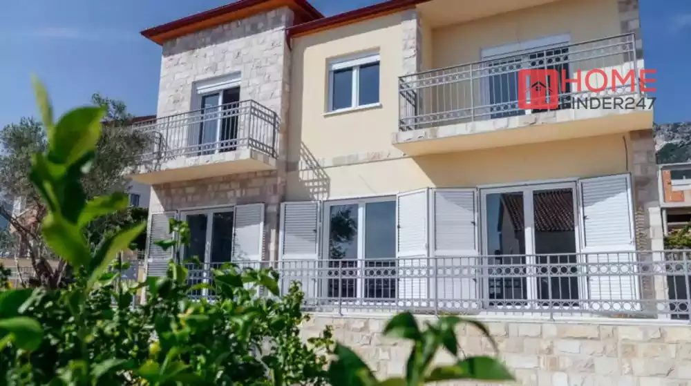 Luxury villa for sale, built in the Balkan style (natural stone, natural tiles, old olive trees and fruit trees) walking distance from the sea, with a beautiful view, in a quiet location in Becici.