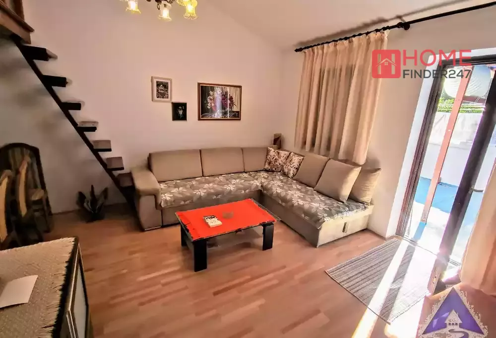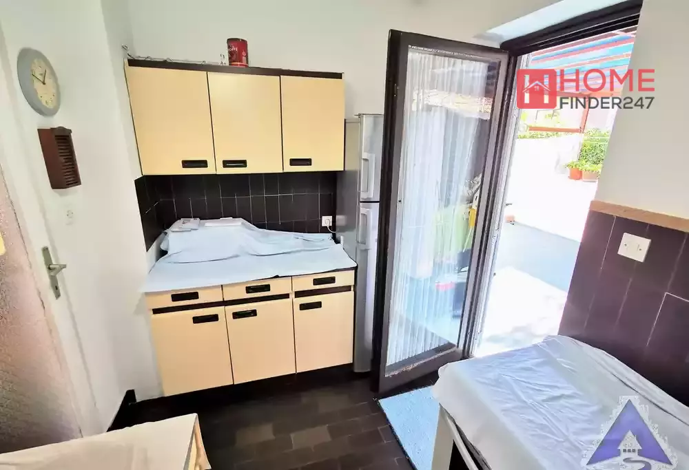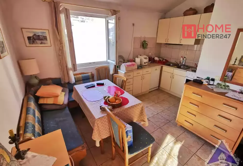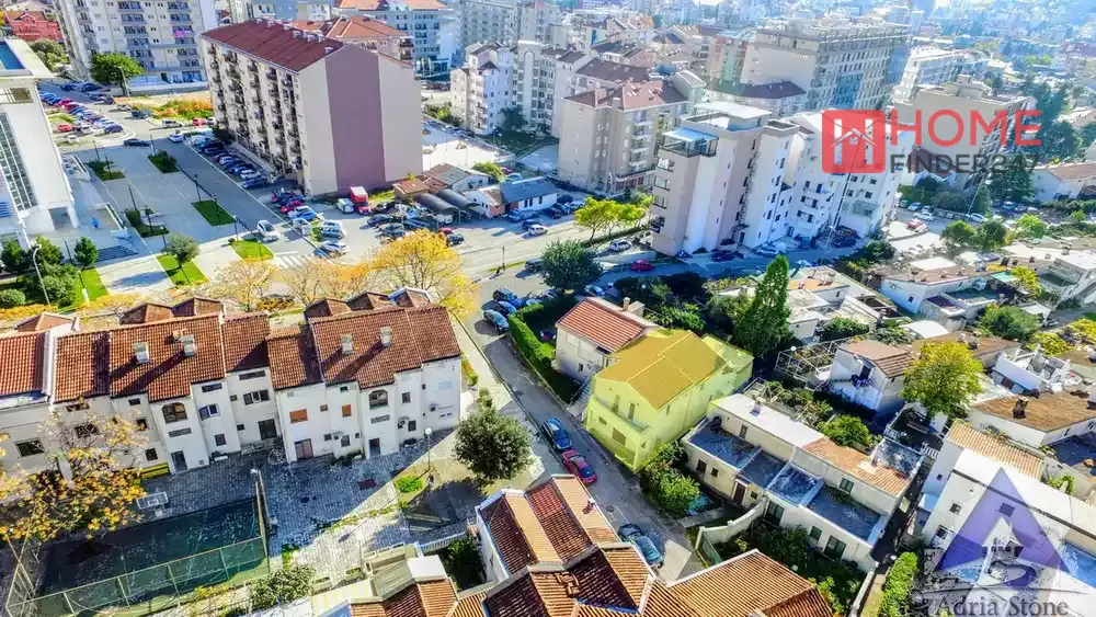 We present you a two floor house of 219 m2 in Rozino, the new center of Budva. The house consists of 2 apartments for rent and one commercial space. On the ground floor there is two bedroom apartment with a big terrace, the total area is 104m2. This apartment consists of a living room with gallery and dinning area, a separate kitchen, two bedrooms from which one is very spacious and a bathroom. The terrace has a rectangular regular space, privacy, ideal for rent out for a family with children. From the other part of the ground floor there is a commercial space of 35 m2. This space consists of main area predicted for office, kitchen part and a bathroom. On the second floor is another two bedroom apartment of 80m2. This apartment consists of kitchen with dinning room, another kitchen, bathroom, two bedrooms and one terrace. By the urban plan of the town, it is possible to construct another two floors on the plot, to be more precise to upgrade the area of the existing house for those additional two floors.