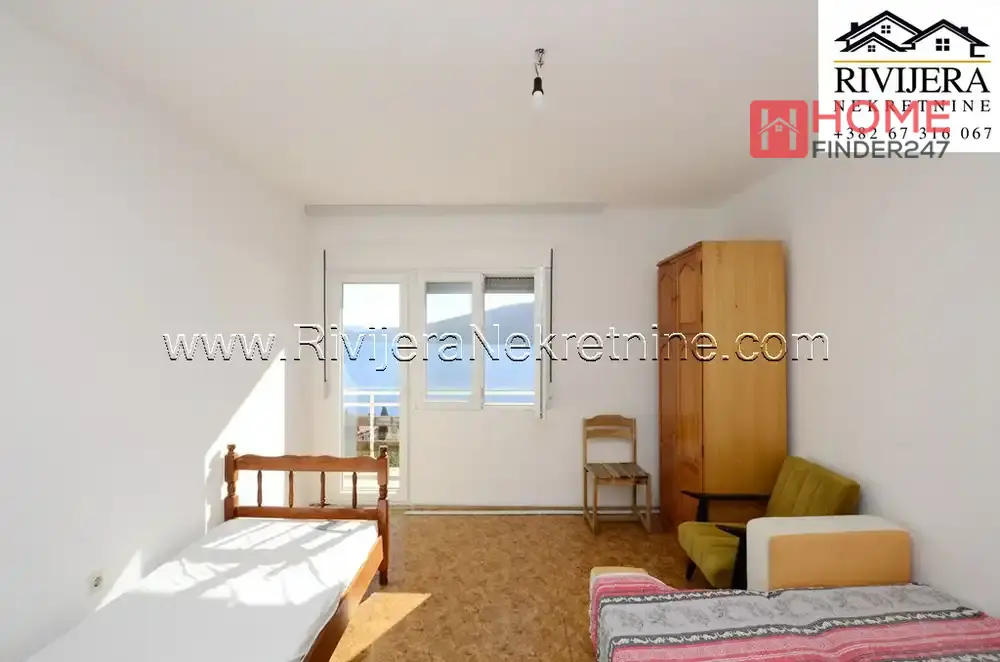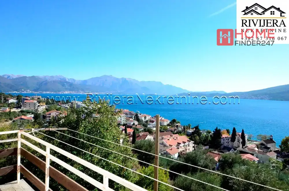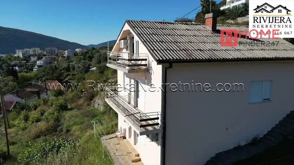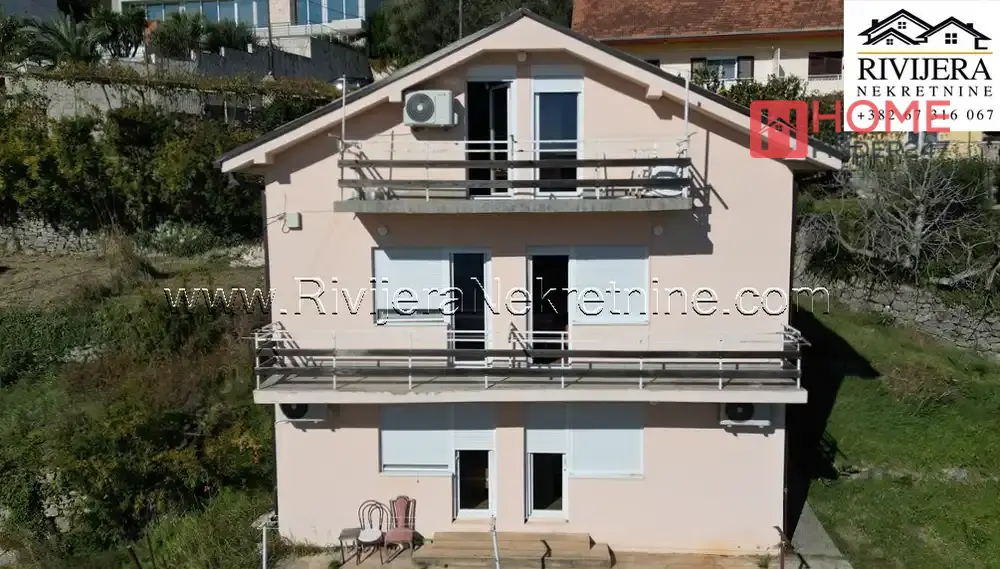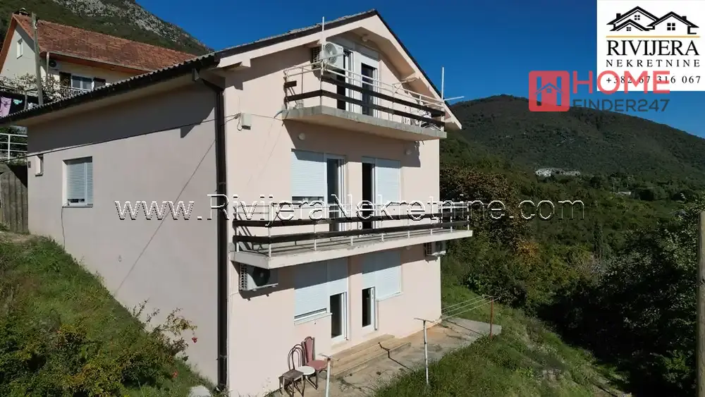 House with a great sea view Djenovic Herceg Novi. The house area is 154 m2, consisting of two small apartments of 12 m2 + 12 m2 (ground floor), a first-floor two-room apartment of 65 m2, and an attic apartment of 65 m2. The land area around the house is 244 m2. House for investment, distance from the sea 500 meters. Price: €250,000
