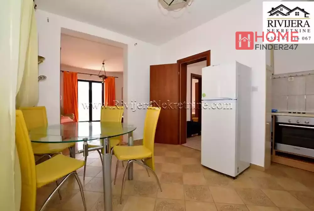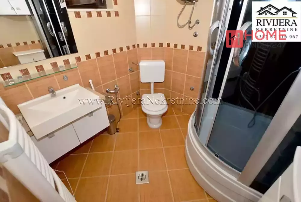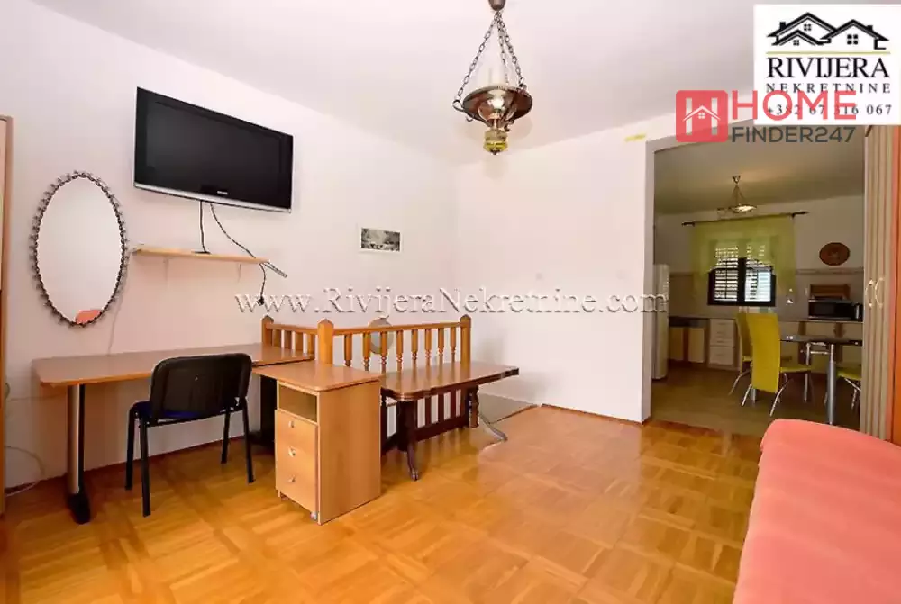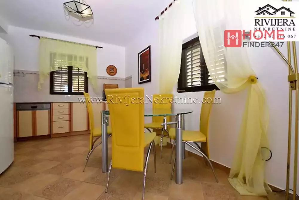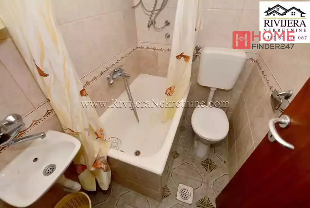 House with sea view in Topla Herceg Novi. House area 166 sqm, plot 374 sqm. Ground floor: garage and studio apartment of 14 sqm. First floor: apartment total area 68 sqm; layout: hallway, living room with kitchen, bedroom, bathroom and terrace. II floor: apartment total area 72 sqm; layout: hallway, kitchen, living room, two bedrooms, bathroom and terrace. Distance to the sea area 400 meters. Price 160.000 euros.