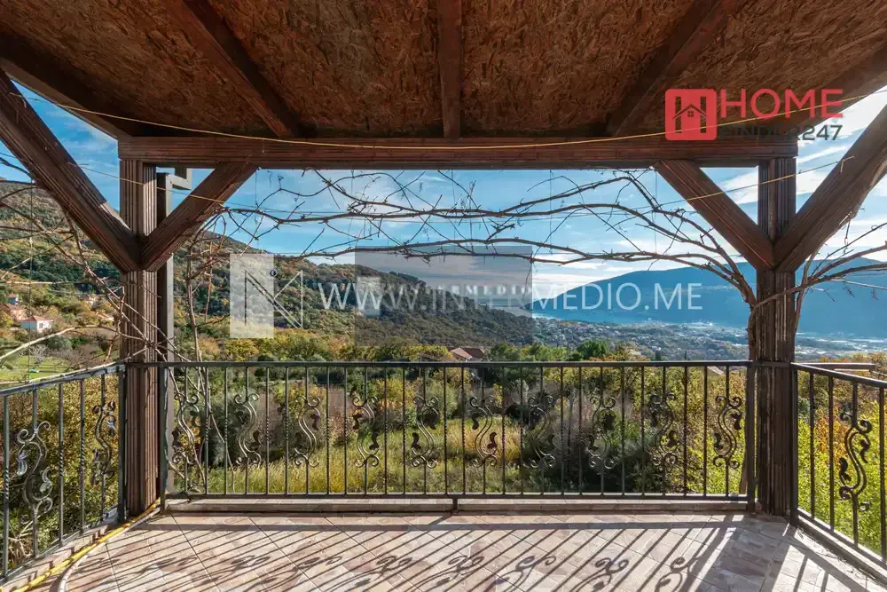 Upstairs, you'll find another bathroom, two bedrooms, and terraces with panoramic views.