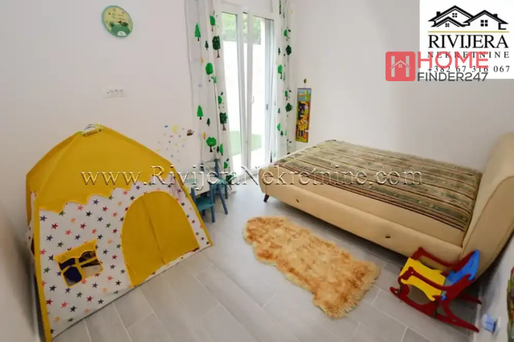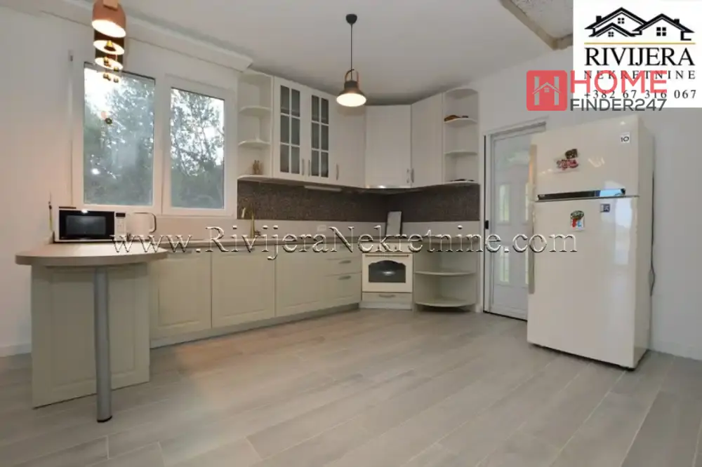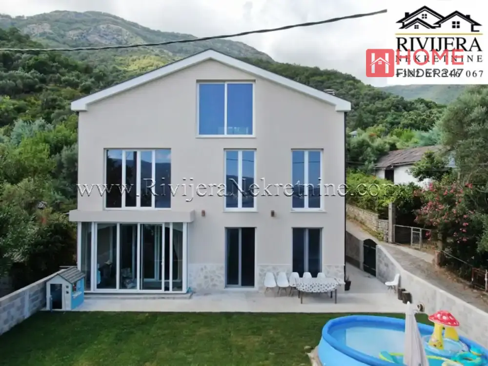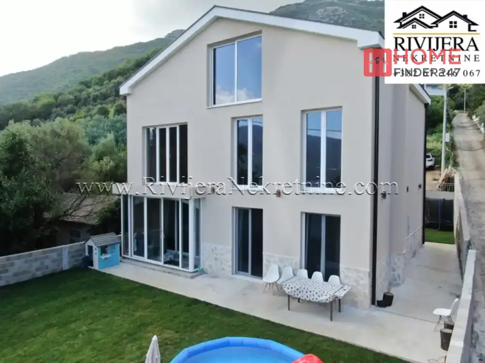 House with sea view, Baosici, Herceg Novi. The surface of the house is 254m2, it consists of the ground floor with a total area of 82m2, the first floor 89m2, and the attic (unfinished) 83m2. Layout of rooms - ground floor: kitchen with dining room, bedroom, living room, toilet. First floor: three bedrooms and a bathroom. Distance from the sea 1.5 km, from Herceg Novi 10 km, Tivat airport 17 km. The house is registered at 135m2 + auxiliary building 9m2, and the area of the yard around the building is 639m2. The possibility of building another building. Price €525,000