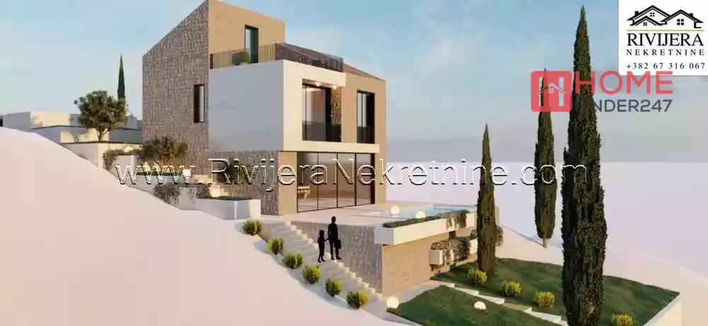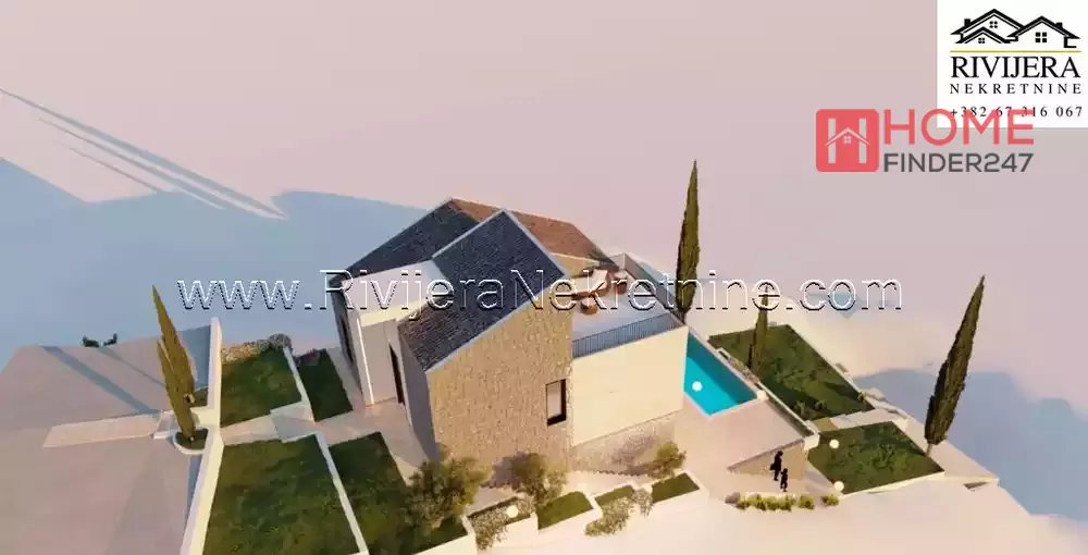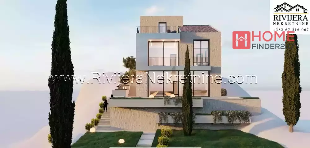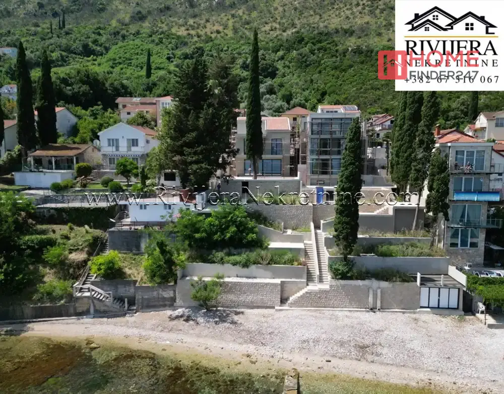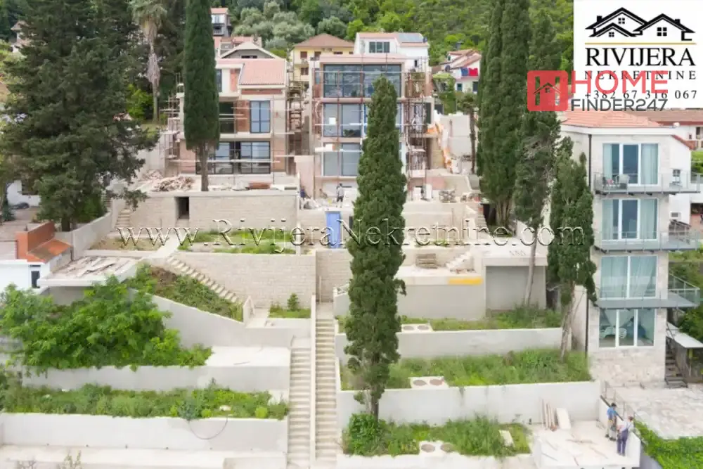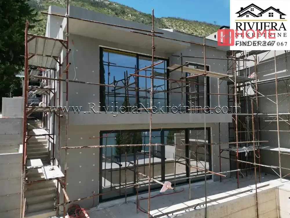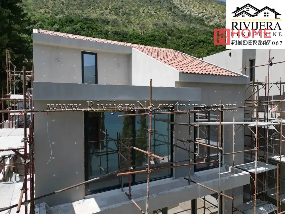 Luxury Villa under construction, first row to the sea, Njivica, Herceg Novi. High-quality construction, materials, swimming pool, parking, excellent sea view, Hereg Novi. The villa is sold completely finished. The deadline is always July 2025. Distance from Herceg Novi 4 km, Cilipi airport (Dubrovnik) 20 km. Very attractive location by the sea. Possibility of mooring a boat, a speedboat on the shore below the Villa. Villa 237 m2 - 2,000,000 euros