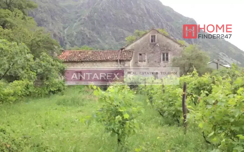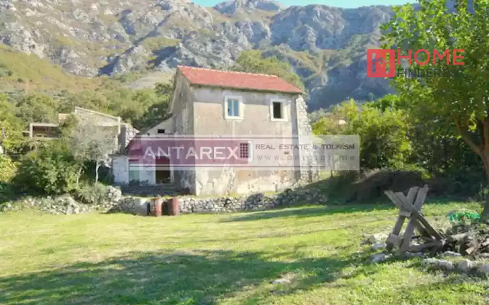 Large stone house with stunning views of the bay. The house area is 171 sq.m., the land area is 890 sq.m. Lovely stone-paved courtyard, green, quiet place. A great opportunity to renovate the house to your liking. Risan's waterfront is 450 meters walking distance.
