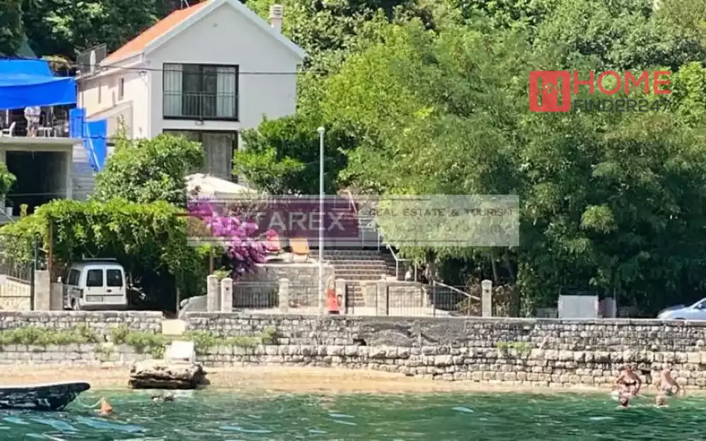 House for sale on the first line with magnificent sea and mountain views. House area 102 sq.m., land area 579 sq.m. The house has two floors, each of which houses a furnished 1-bedroom apartment. The area of the apartment on the first floor is 41 sq.m., on the second floor it is 61 sq.m. Each floor has a separate entrance and its own large terraces. The site consists of two parts, on one of which you can continue construction. The house has a city water supply system and additionally has a tank. Each apartment has a wood-burning fireplace, air conditioning and floor heating in each room, cable TV and Internet, a sauna. The whole house has a central boiler. A beautiful, well-groomed plot with a recreation area and parking. All infrastructure within walking distance - cafes, beaches, restaurants, shops.
