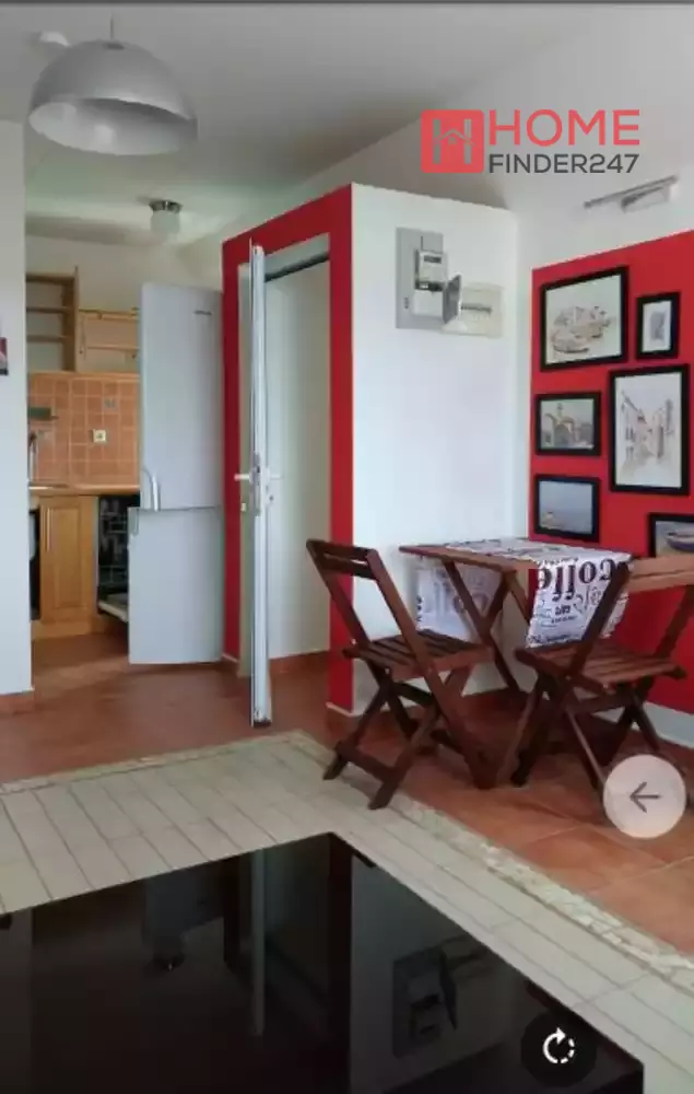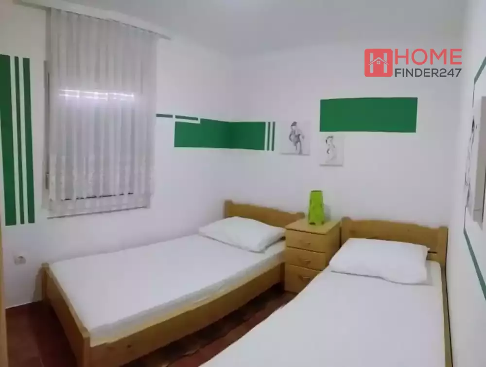 Ground floor: 2 bedrooms, bathroom, small hallway, kitchen, living room,