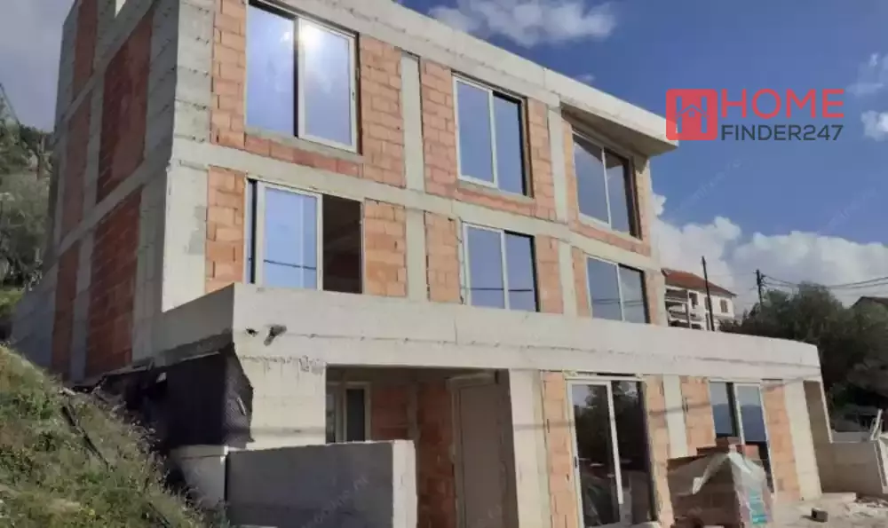 New, three-storey house with panoramic views of the sea and Tivat. City center - 5 minutes by car or 15 minutes on foot. The house was built with all permits, taxes paid for connecting to communications. The house is being sold in its current state - the facade of the building and interior decoration are not completed.