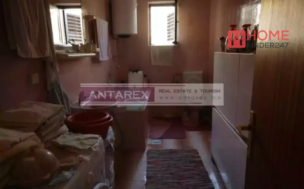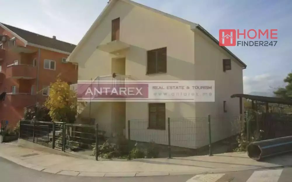 For sale a residential two-storey house with an area of 162 sq.m. on a plot of 412 sq.m. The house is located near the center of Tivat. The house has two floors with separate entrances, the area of each floor is 81 sq.m. The first floor needs renovation. The layout of each floor is the same: an entrance hall, a living room, a kitchen-dining room, two bedrooms, a bathroom, a laundry room and a balcony. The territory is planted with a garden, a small vegetable garden and a parking lot. The facade of the house is thermally insulated.