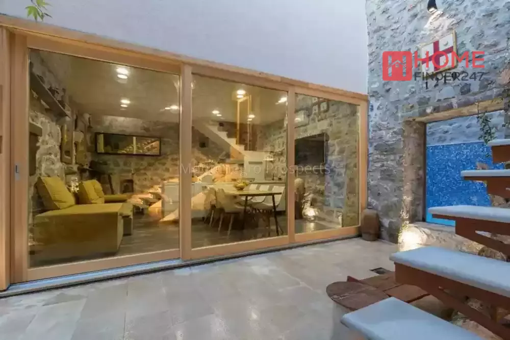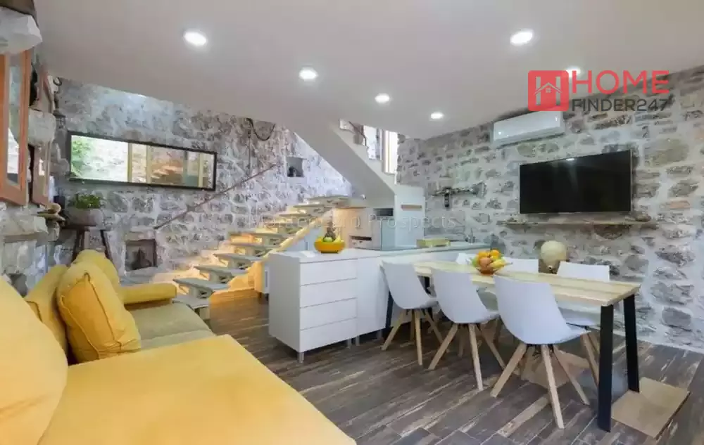This beautifully renovated old stone house perfectly blends historical charm with modern luxury. It features three bedrooms, four bathrooms, a wine cellar, and a pool. The open-plan living area, with glass walls and exposed stone, seamlessly integrates the old with the new. The modern kitchen and dining area are designed for both functionality and style. The serene bedrooms offer ample natural light, and the luxurious bathrooms provide a spa-like experience. The wine cellar and outdoor pool add extra touches of elegance to this unique home.