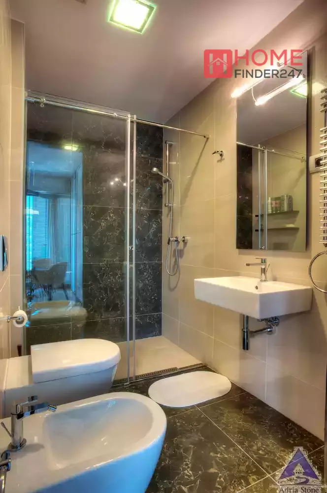 Situado a solo 100 metros del mar, cerca del casco antiguo de Budva, puerto deportivo y otras comodidades, con vigilancia por cámara y sistema de alarma para mayor seguridad.