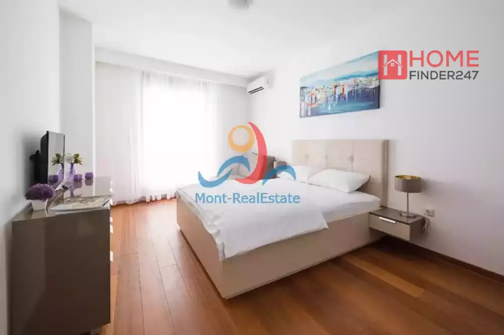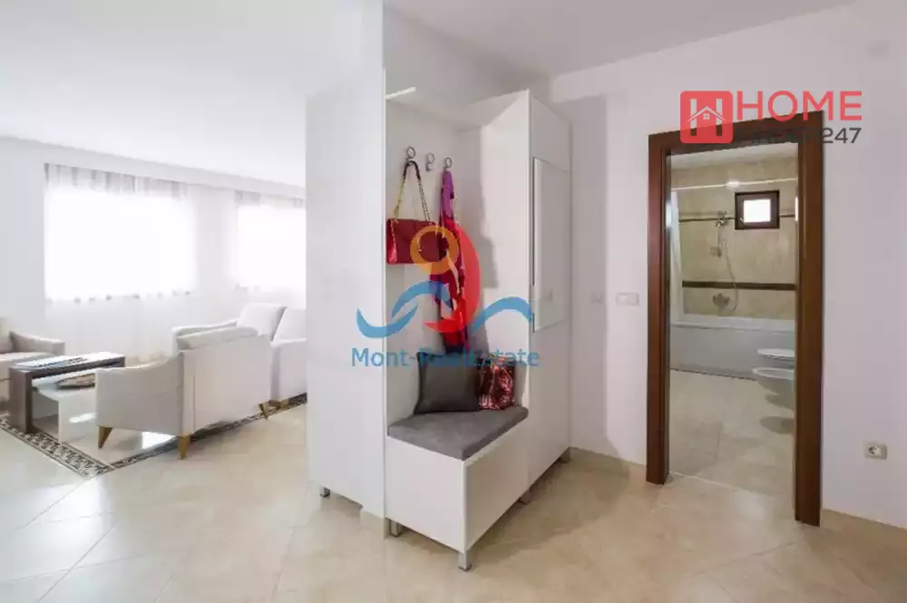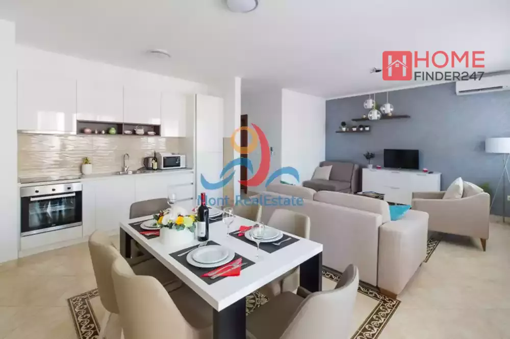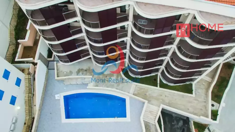 ¡Oportunidad en Budva! Apartamento en Becici en venta en un complejo con piscina. Nuevo edificio de 93m2 en el primer piso. La vivienda cuenta con vestíbulo, dos dormitorios, dos baños, cocina con comedor, salón y balcón con vistas al mar.