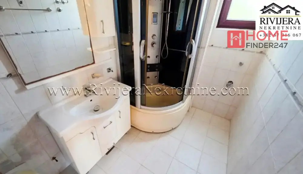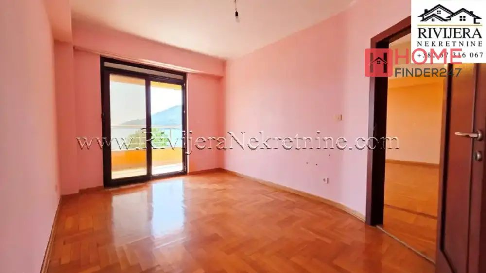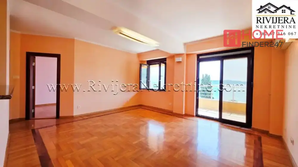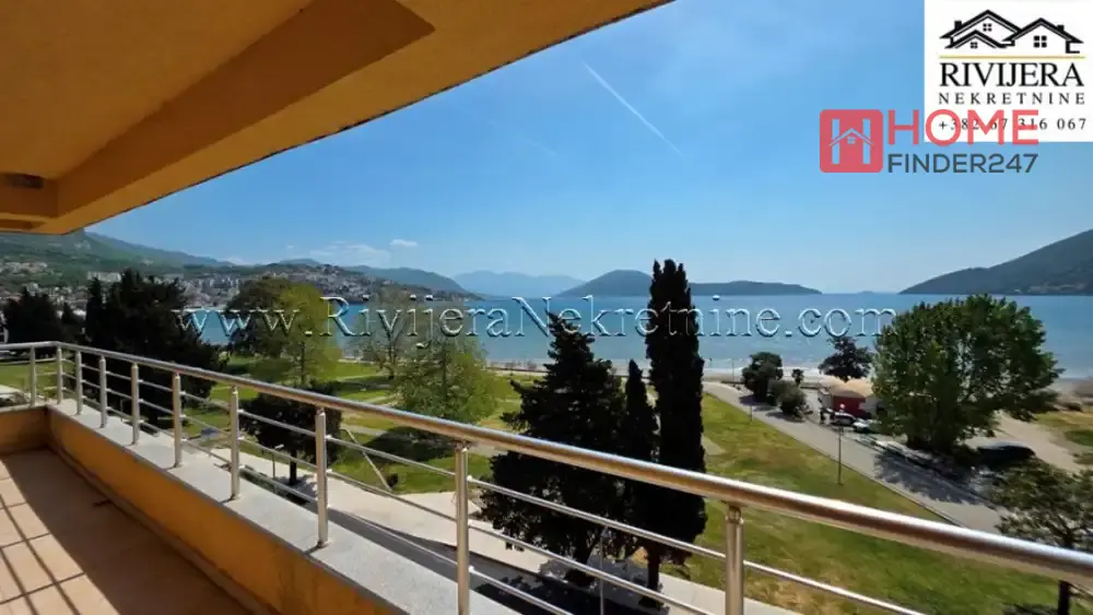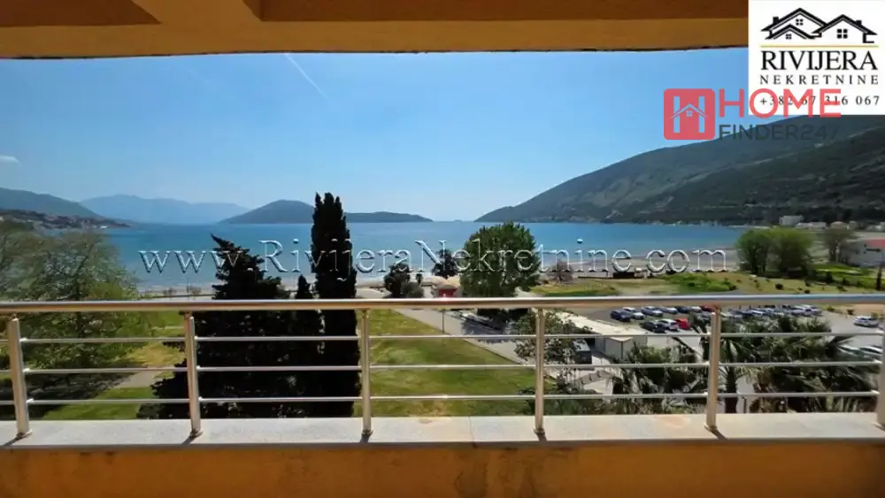 First row to the sea apartment with a garage in Igalo, Herceg Novi. One-bedroom apartment with panoramic sea view. Apartment area 60 m2, garage in the building. Room layout: Living room, kitchen, bedroom, bathroom, and terrace. Elevator from the garage to the apartment