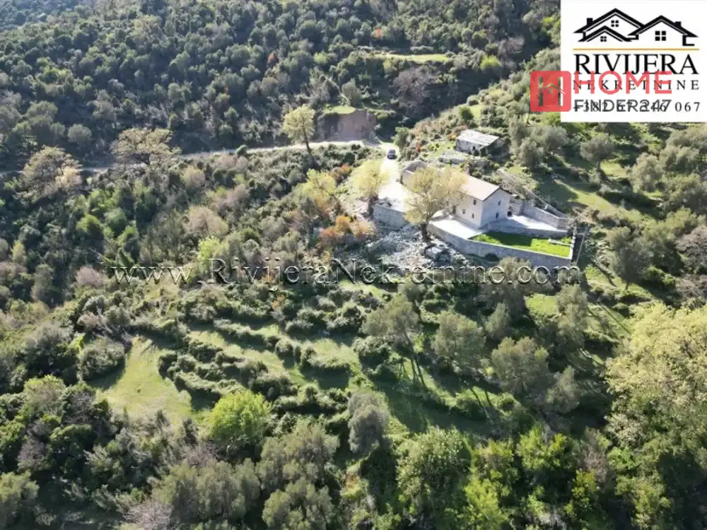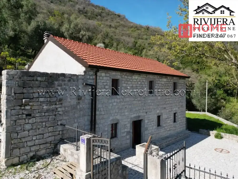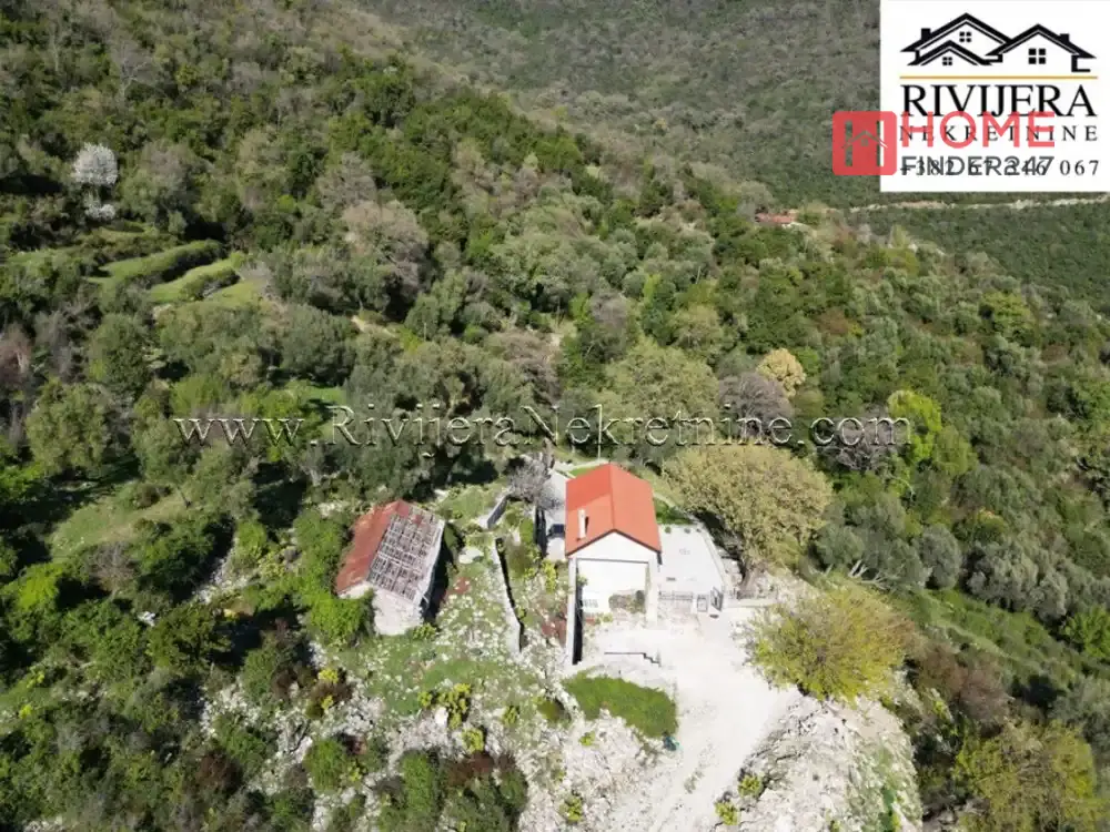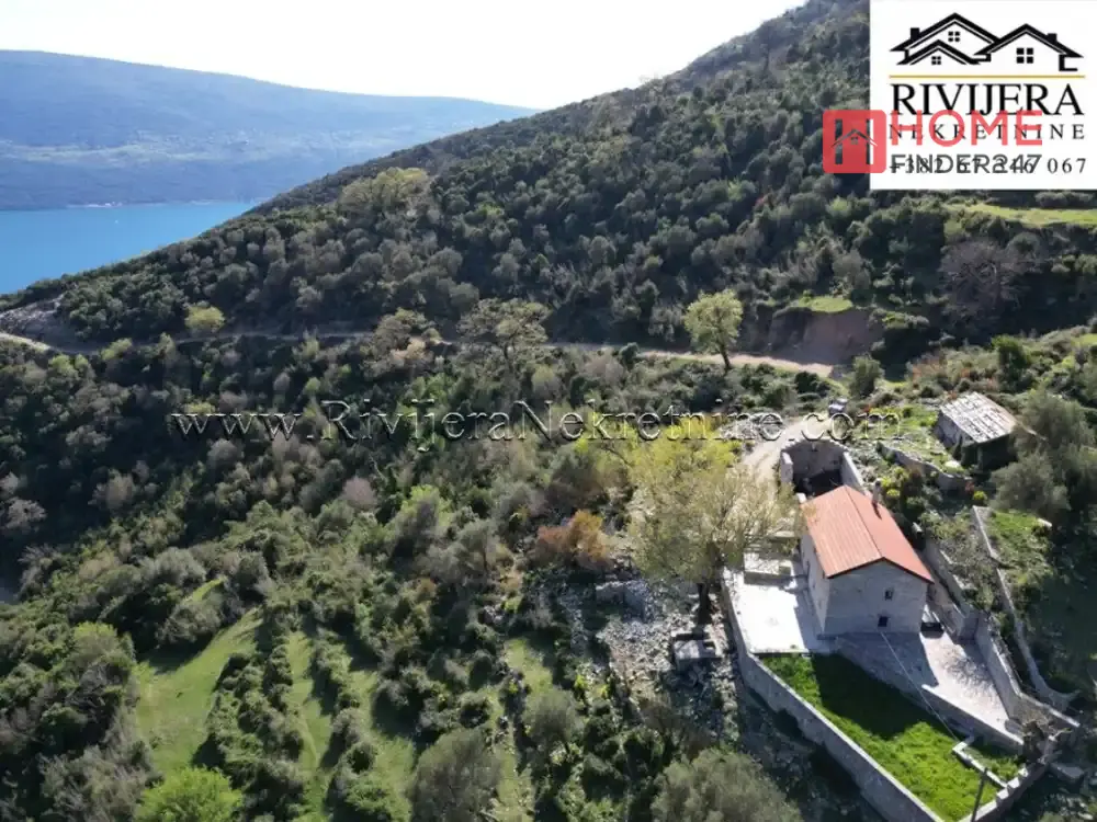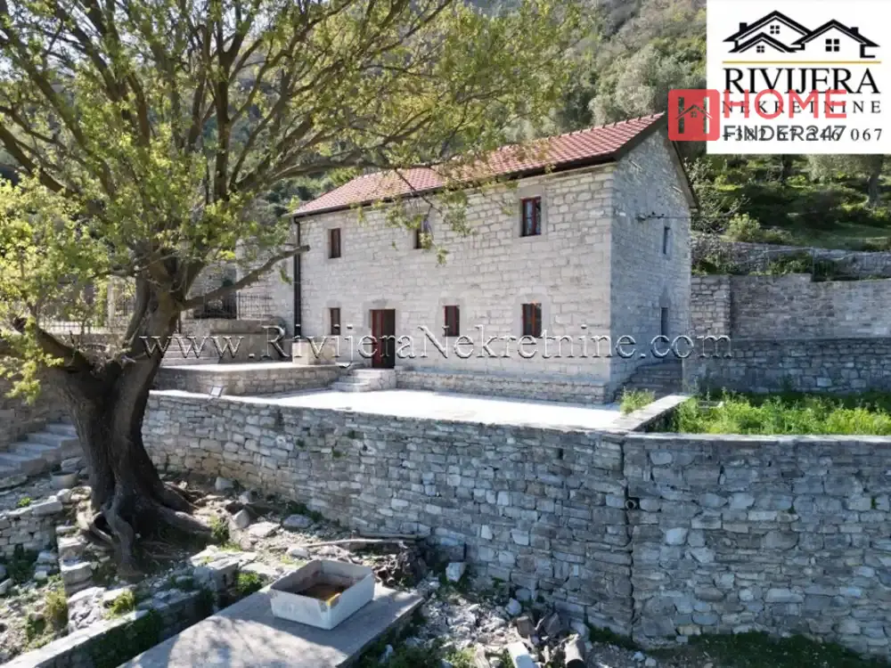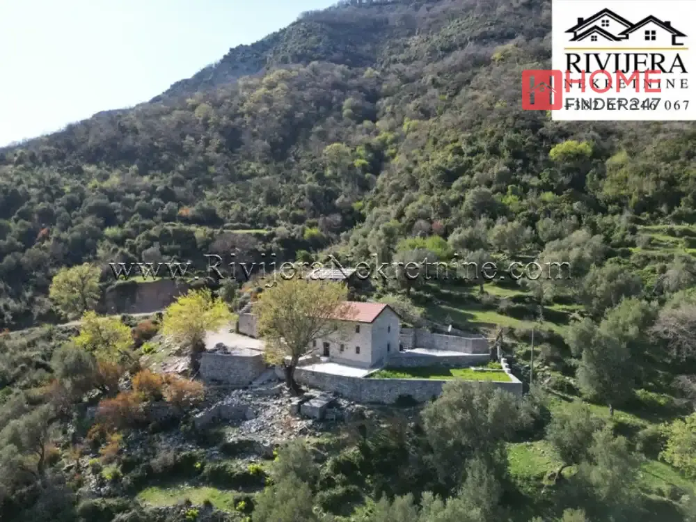 Descubre esta encantadora casa de piedra en Baosic, Herceg Novi, ubicada en un amplio terreno de 20.643 m² que garantiza paz, privacidad y múltiples oportunidades para inversión o disfrute en plena naturaleza.