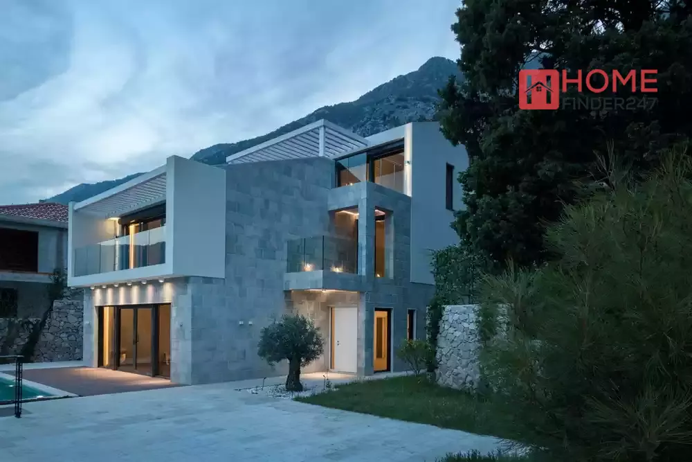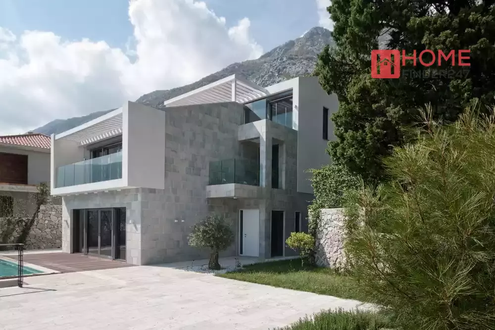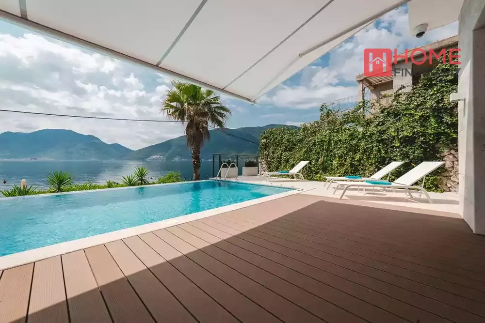 ¡Vive frente al mar en esta exclusiva villa en Strp, en la bahía de Kotor! Disfruta de amplias terrazas, jardines paisajísticos y una piscina privada para relajarte bajo el sol.