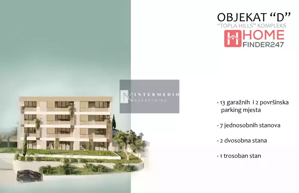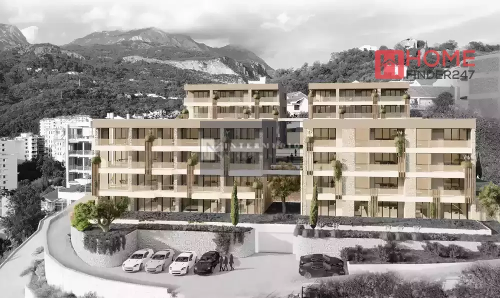 In vendita a Herceg Novi, appartamenti ancora in costruzione all'interno di un complesso chiuso composto da quattro palazzine di quattro piani ciascuna.