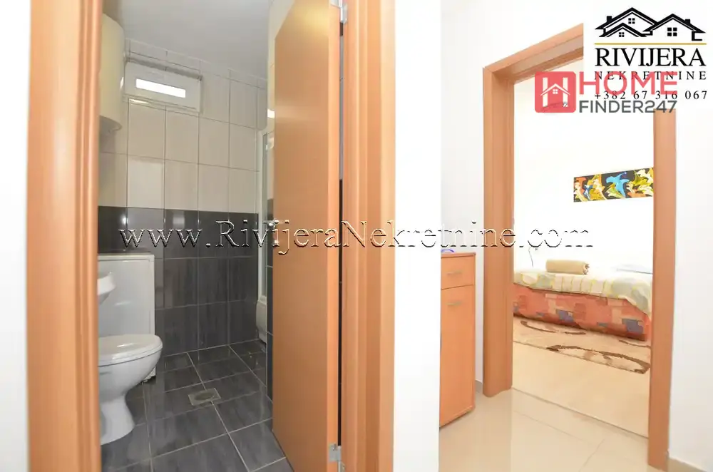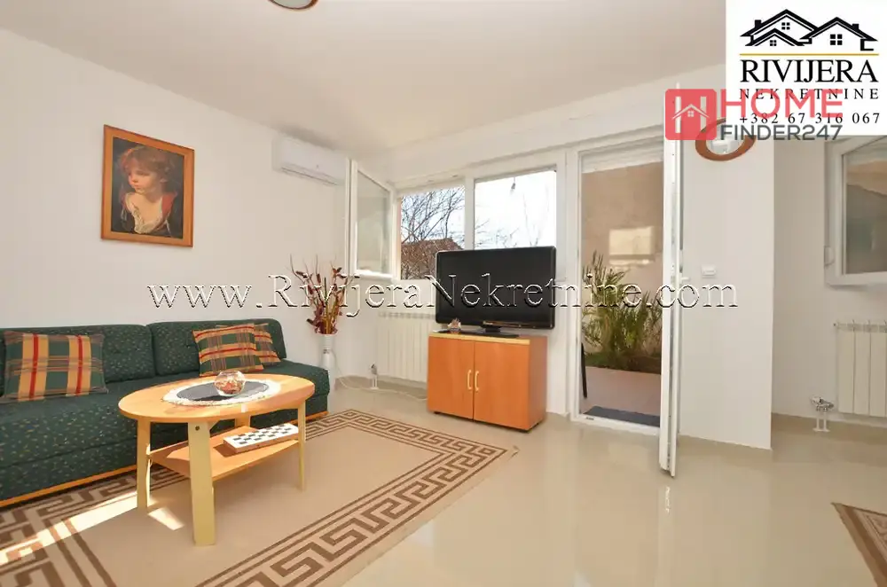 Appartamento con una camera da letto in vendita a Igalo, Herceg Novi. Superficie di 45 m2 + terrazza nel cortile di 30 m2. Disposizione: ingresso, bagno, camera da letto, soggiorno con angolo cottura. L'appartamento è completamente arredato, dotato di riscaldamento centrale e parcheggio. Dista 4 km dal mare. Prezzo: 78.000 euro.