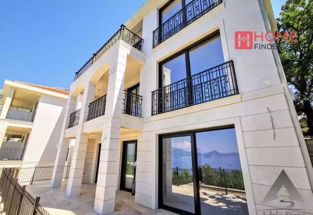 Villa di lusso per famiglia in vendita a Skocidjevojka, Budva. Goditi una vista panoramica mozzafiato e una piscina all'aperto in questa splendida proprietà situata sulla penisola di Skocidjevojka, vicino a Budva.