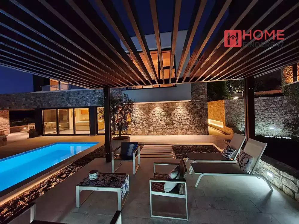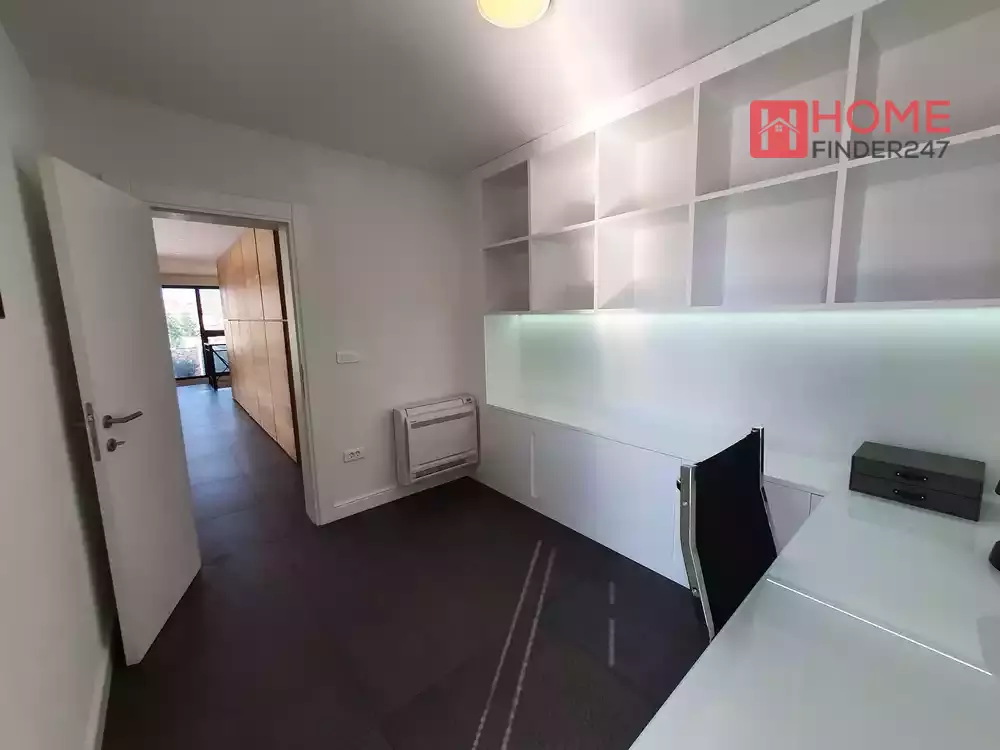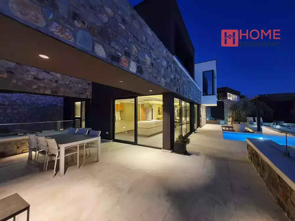 Il primo piano ospita un soggiorno e zona pranzo open space, cucina completamente attrezzata, servizio per gli ospiti, ufficio che può diventare una quarta camera. Il soggiorno si apre su piscina riscaldata e terrazze con giardini curati.