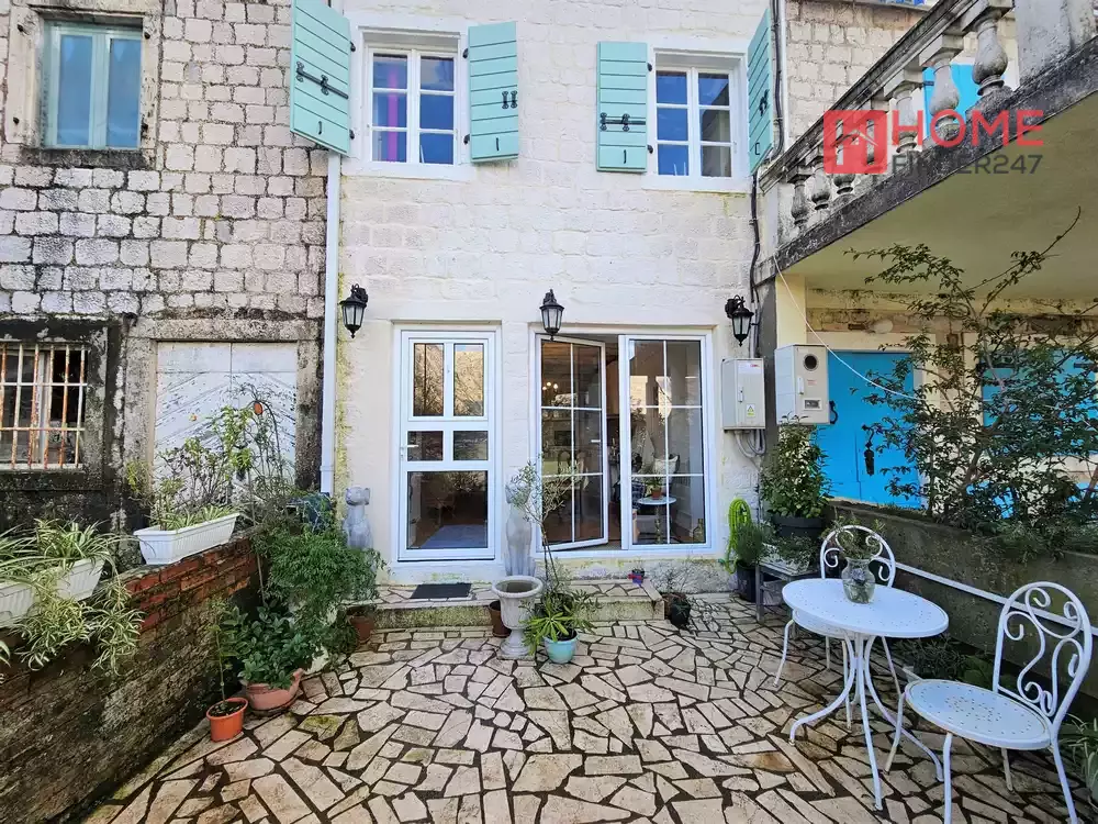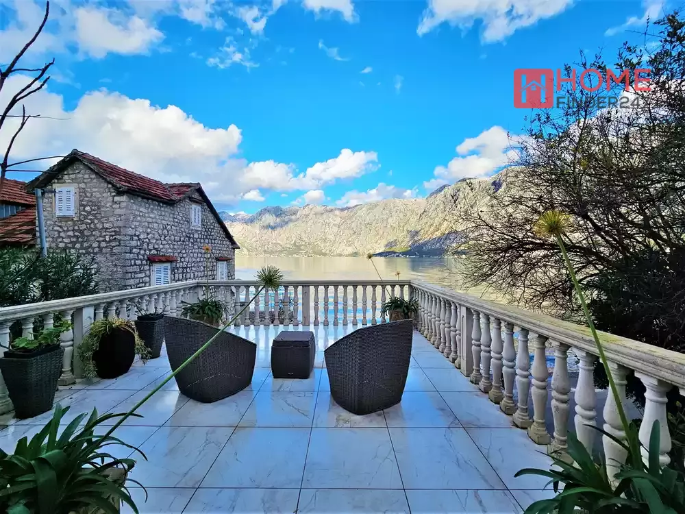 Questa affascinante proprietà recentemente ristrutturata dispone di un'area interna di 120m2, un giardino di 15m2 e una spaziosa terrazza con viste spettacolari sulla Baia di Cattaro.
