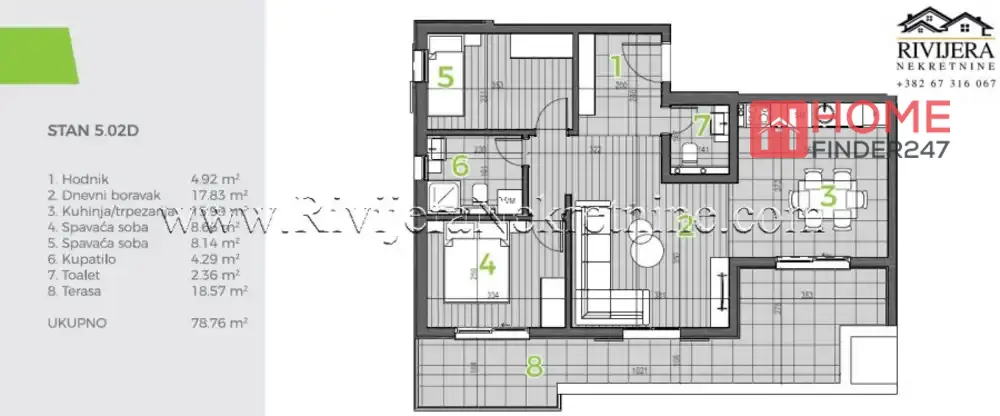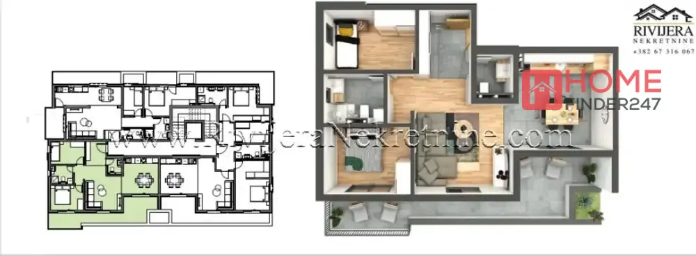 Dvosoban stan u izgradnji Bijela Herceg Novi. Povrsina 79m2, 5.sprat. Raspored prostorija: hodnik,dnevni boravak, kuhinja, dvije spavaće sobe, kupatilo, toalet, terasa. Visok kvalitet gradnje i ugradnjih materija. Podzemne garaze, lift. Kupovinom od investitora ne placa se porez na promet. Rok zavrsetka radova Jul 2026. Ravan teren, u blizini banke, doma zdravlja, skole, prodavnica. Udaljenost od mora 200m, aerodroma Tivat 16km. Cijena : 236.280€