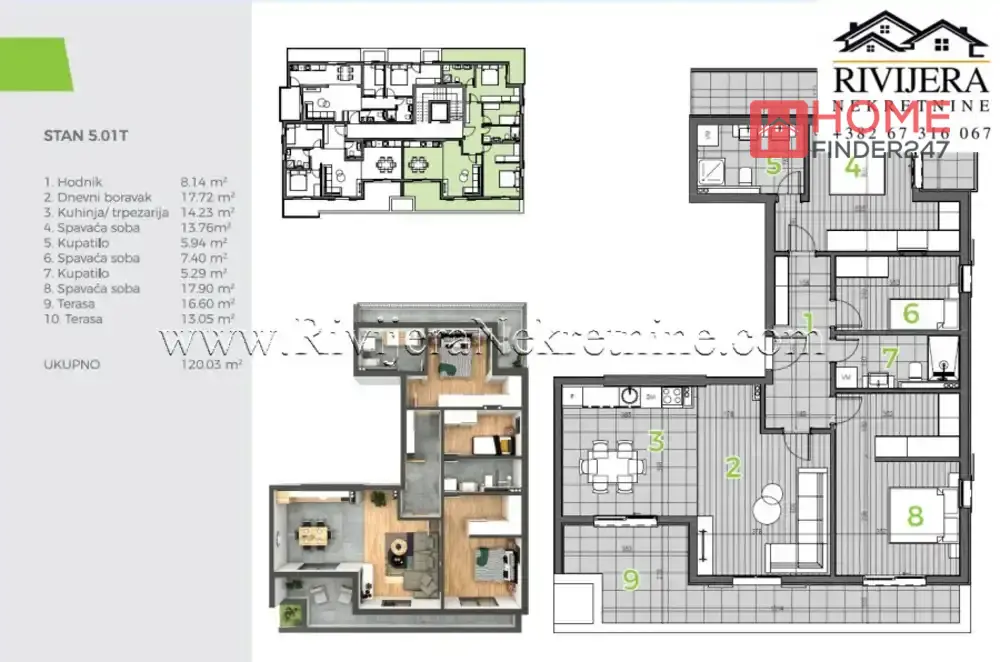 Trosoban stan u izgradnji Bijela, Herceg Novi. Povrsina stana 120m2, V sprat. Raspored prostorija: hodnik,dnevni boravak, kuhinja, tri spavaće sobe,dva kupatila,dvije terase. Visok kvalitet gradnje i ugradnjih materija. Podzemne garaze, lift. Kupovinom od investitora ne placa se porez na promet. Rok zavrsetka radova Jul 2026. Ravan teren, u blizini banke, doma zdravlja, skole, prodavnica. Udaljenost od mora 200m, aerodroma Tivat 16km. Cijena: 360. 090€