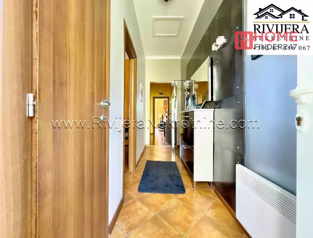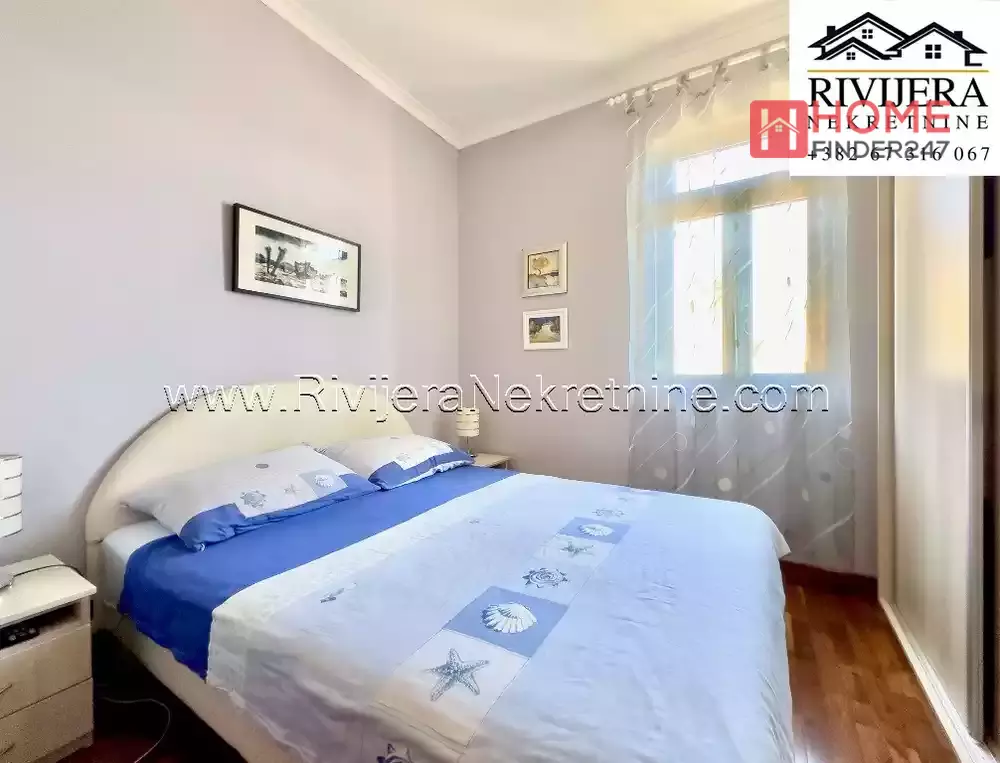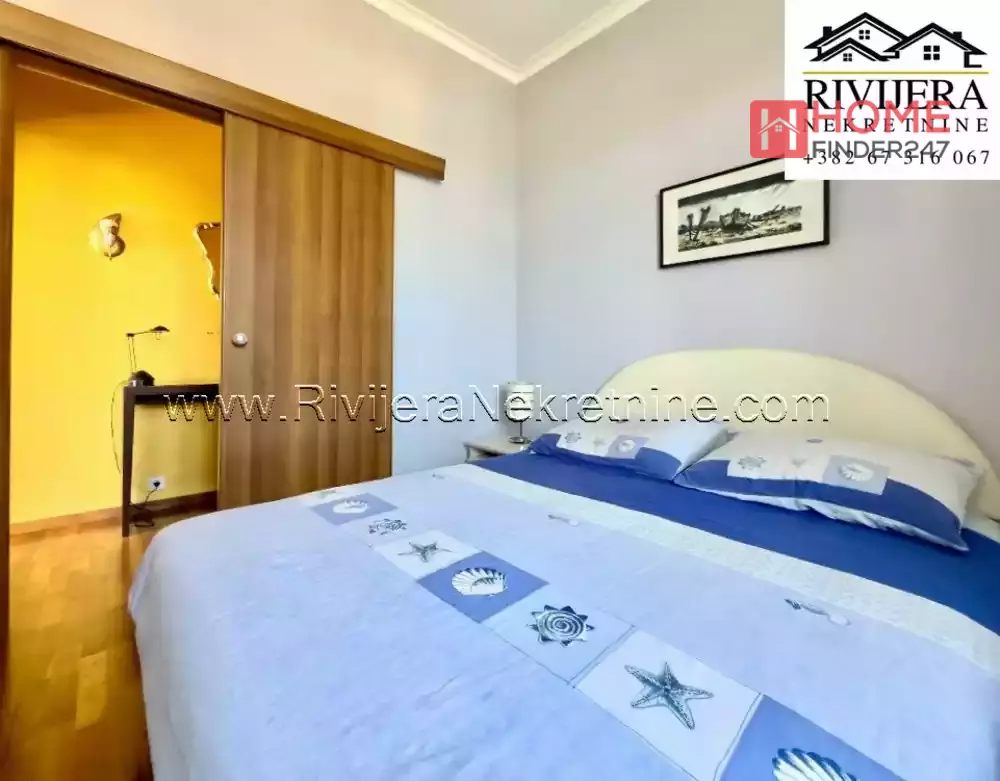 Raspored prostorija: Dnevni boravak koji pruza osjecaj boravka na samom brodu, spavaca soba, kuhinja sa trpezarijom, hodnik i kupatilo. Tarasa koja se nalazi uz stan sa straznje strane predstavlja kutak za uzivanje u hladu zelenila vinove loze.
