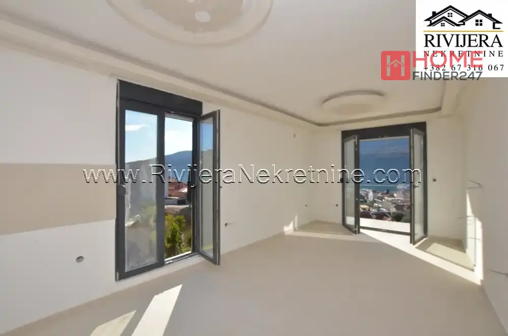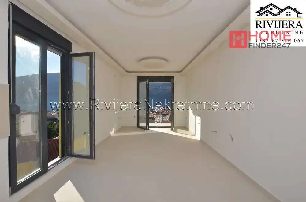 Djenovic novogragnja jednosoban stan odlican pogled na more. Povrsina stana 47 m2, raspored prostorija: ulazni hodnik, kupatilo, spavaca soba, dnevna soba sa kuhinjom, terasa (ka moru). Atraktivna lokacija do marine Portonovi Kumbor. Cijena: 143.350 eura