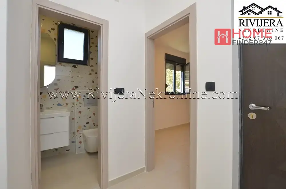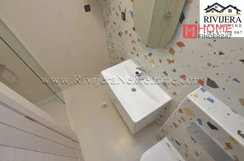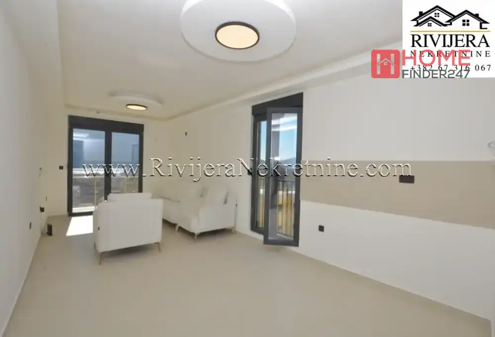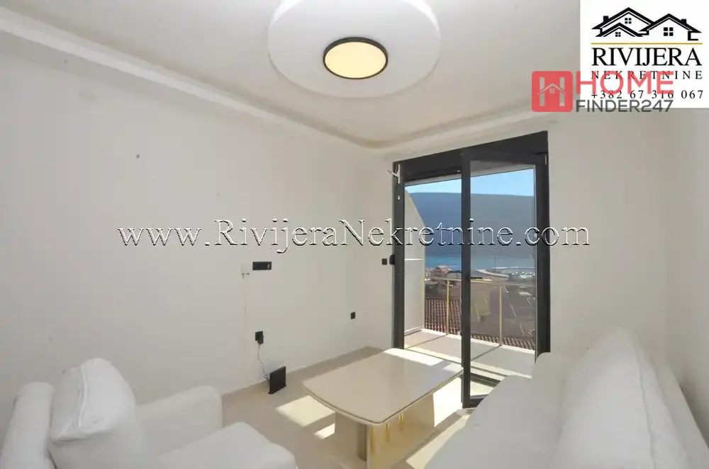 Jednosoban stan sa odlicnim pogledom na more Djenovic. Novogradnja, povrsina stana (47 m2), udaljenost od mora, marine Portonovi Kumbor, 150 metara. Cijena: 150.000€