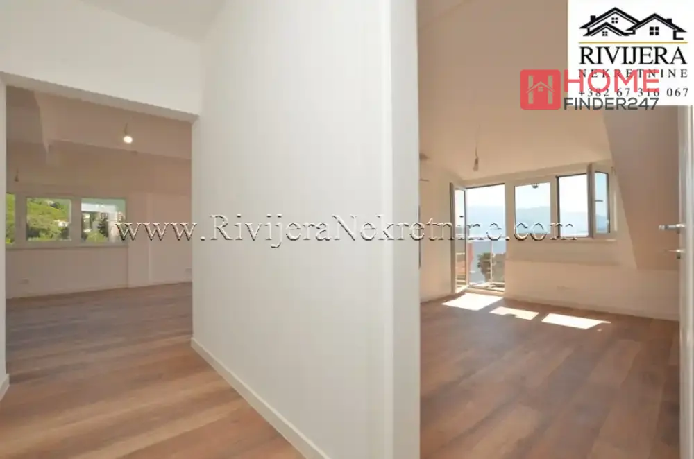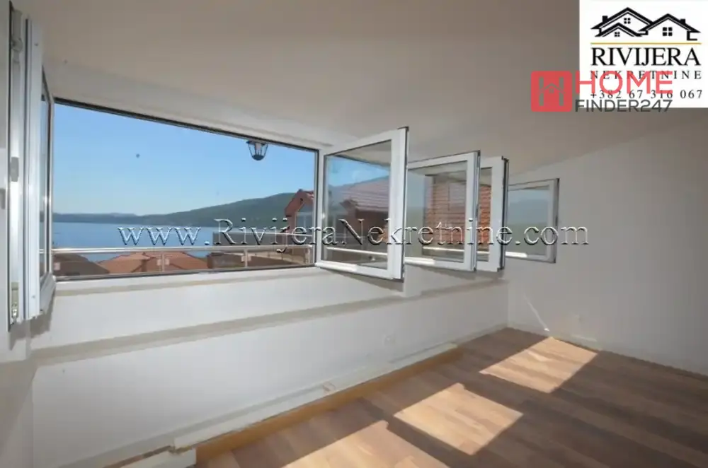 Dvosoban stan na samoj obali mora Djenovici Herceg Novi. Povrsina stana iznosi 109m2, (uknjizen na 86m2). Raspored prostorija: ulazni hodnik, dvije spavace sobe, kupatilo, dvije terase, dnevna soba sa kuhinjom, cijena: 335.000€
