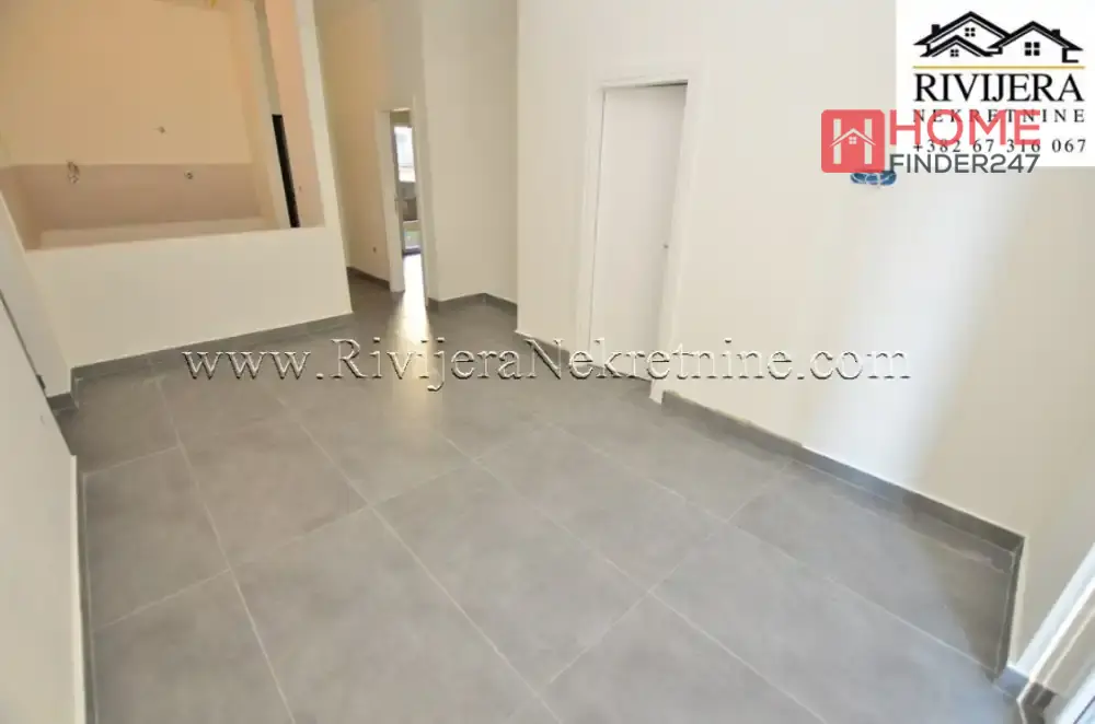Dvosoban stan Djenovici Herceg Novi. Površina stana 74m2 + 8.5m2 dvorište, prizemlje. Raspored prostorija: dnevna soba sa kuhinjom, dvije spavaće sobe, terasa i kupatilo. Parking mjesto 10.000€. Cijena: 248.450€