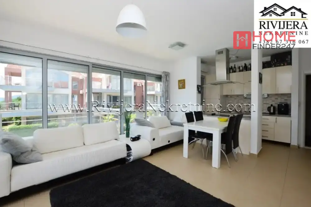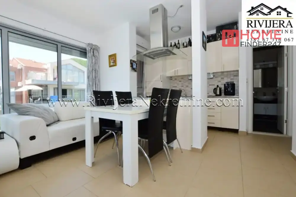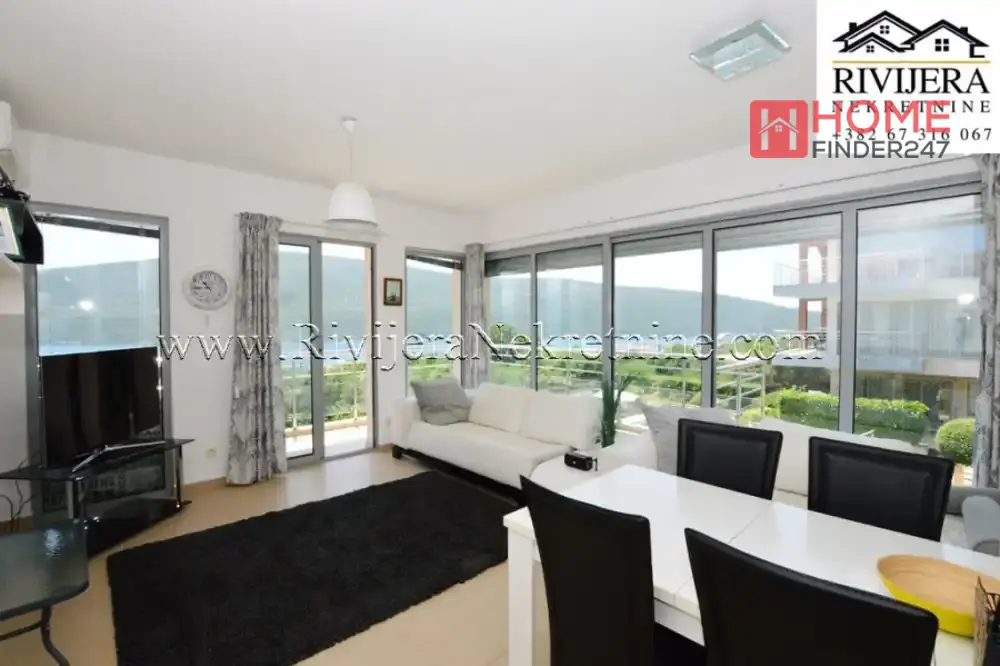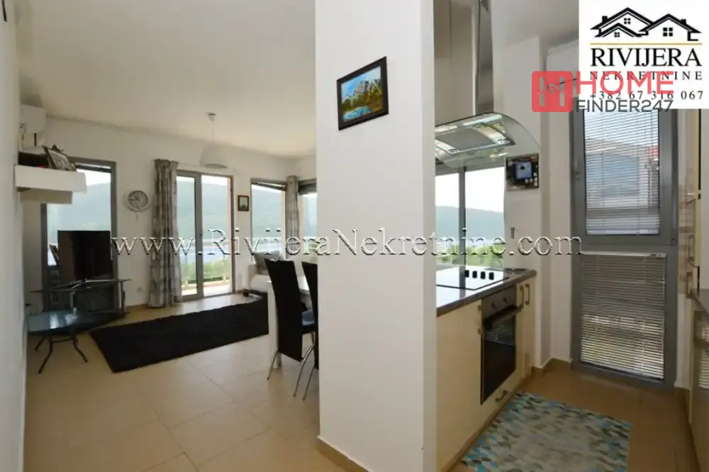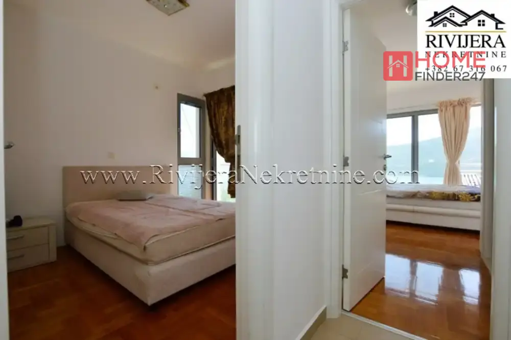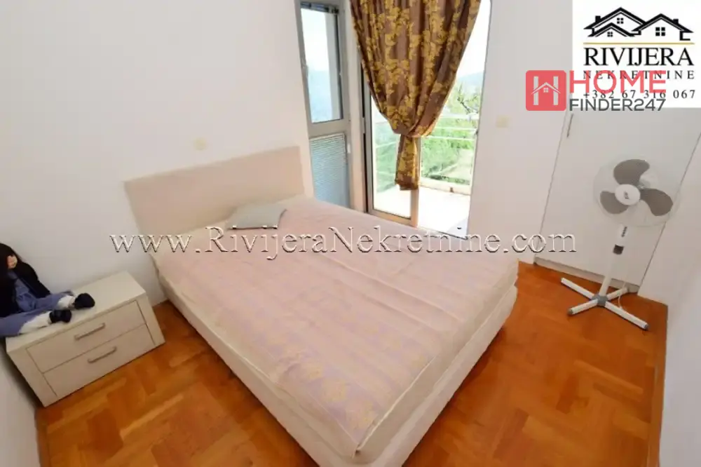 Dvosoban stan sa odlicnim pogledom na more Djenovic. Povrsina stana 77 m2, stan opremljen. Raspored prostorija: ulazni hodnik, dva kupatila, dvije spavace sobe, dvije terase (ka moru) dnevna soba sa kuhinjom. Stan na prvom spratu juzno orjentisan, parking obezbijedjen. Udaljenost od mora 400 metara, od Herceg Novog 8 km. Cijena 210.000 eura