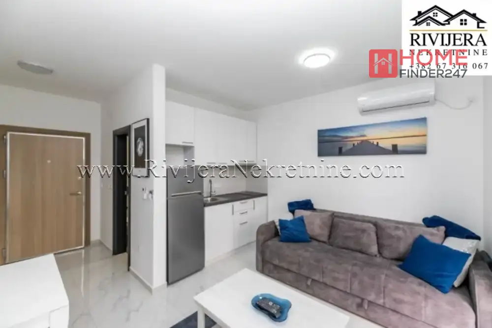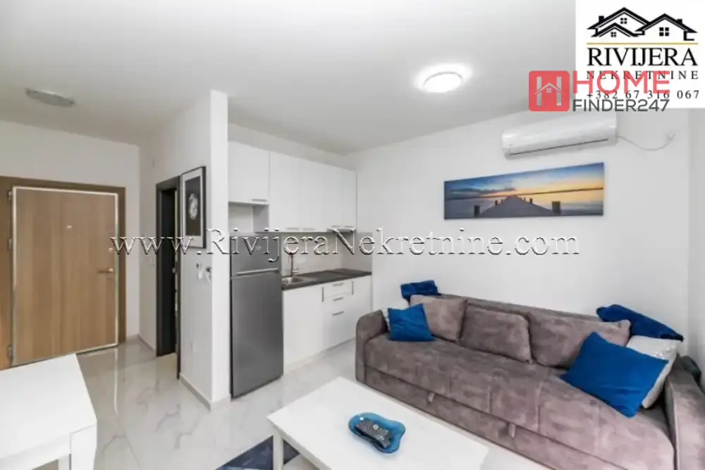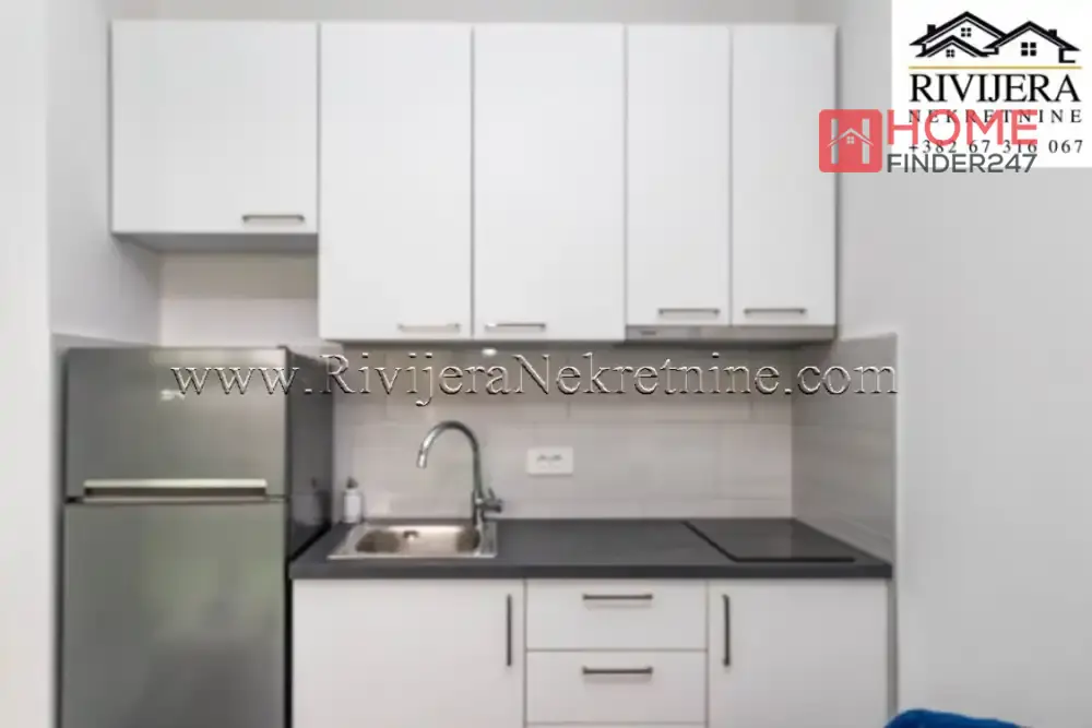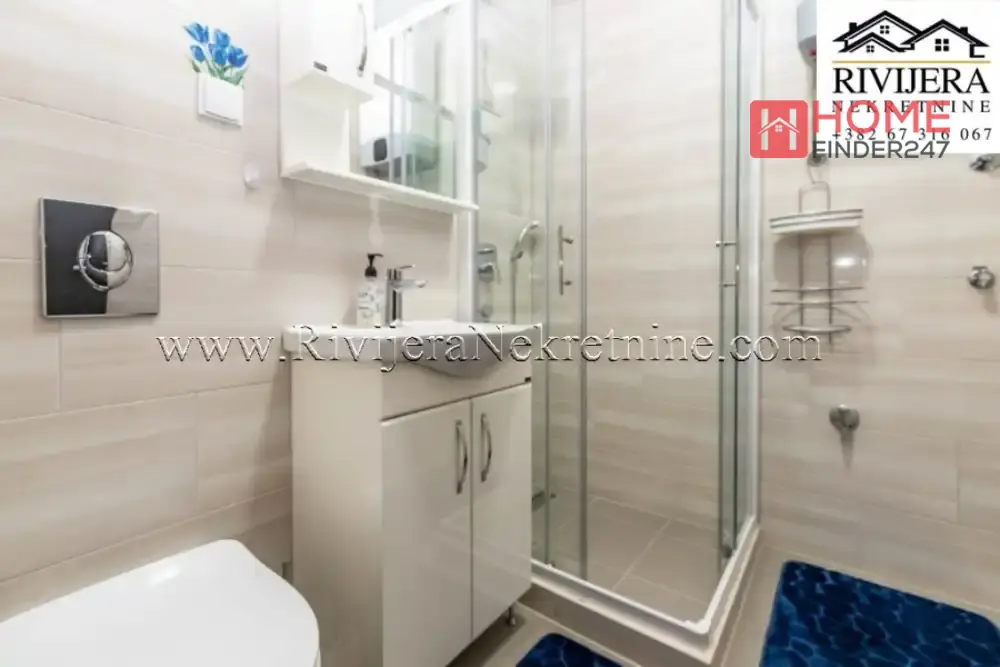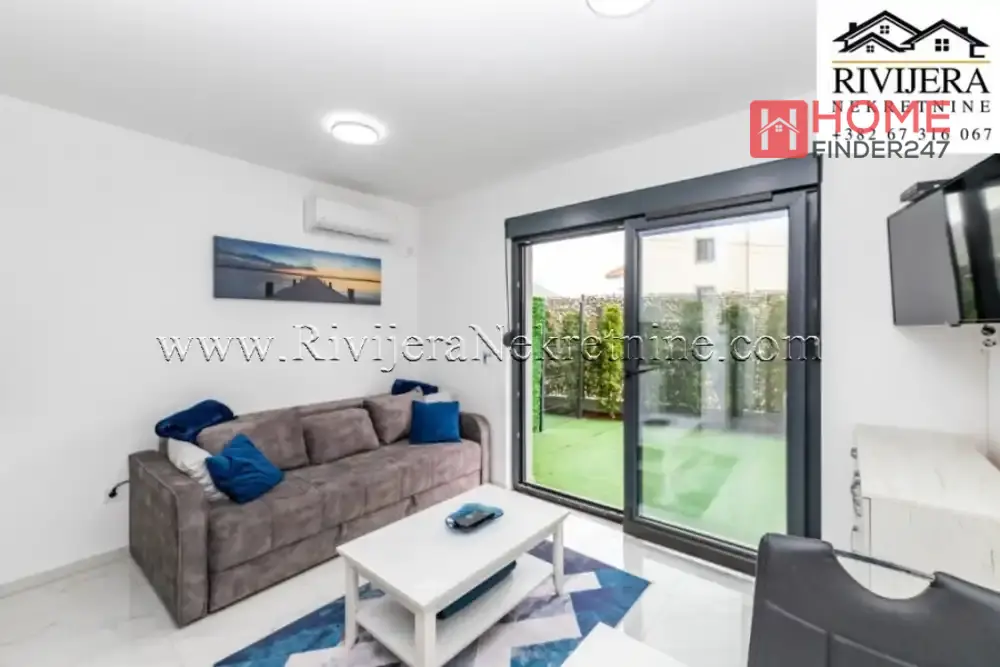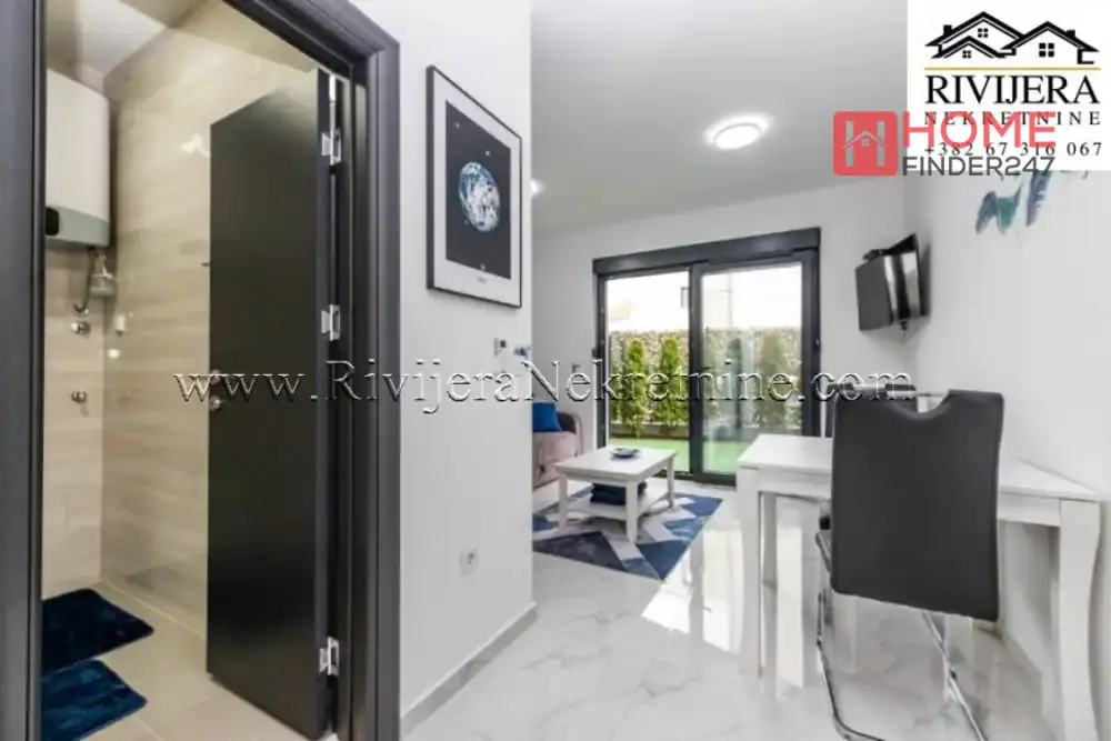 Studio apartman sa dvoristem Djenovici Herceg Novi. Površina studia 20m2 + dvoriste 19m2. Raspored prostorija: dnevni boravak sa kuhinjom i trpezarijom, hodnik, kupatilo, terasa. Udaljen 200 m od mora. Parking mjesto. Cijena: 95.000 eura
