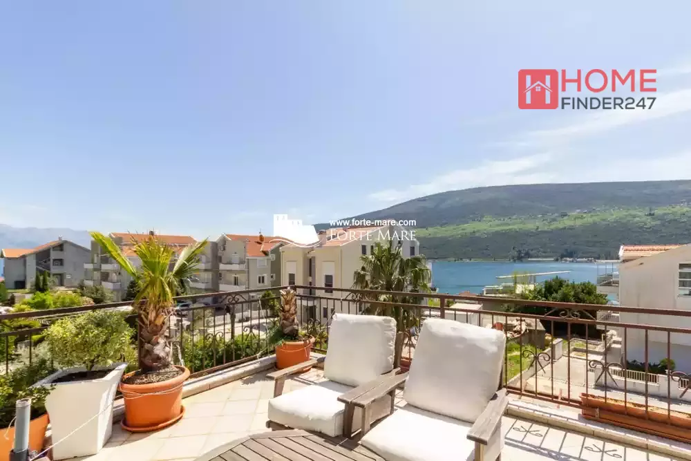 Apartment with sea view for sale in Djenovici, municipality of Herceg Novi. Apartment with a total area of 88m2. The building is within walking distance of the beach, exclusive complex with marina Portonovi, and just 100 meters from the sea. The apartment has a living room with kitchen nad dining area, two bedrooms, bathroom, terrace.