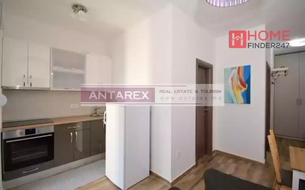 Apartment for sale in a new, small apartment building. The apartment has a total area of 34 sq.m. located on the third floor. Layout - corridor, living room with kitchen area, bedroom, bathroom, balcony. Parking place is included in the price. The house has an outdoor pool. The apartment is fully furnished and equipped with household appliances.
