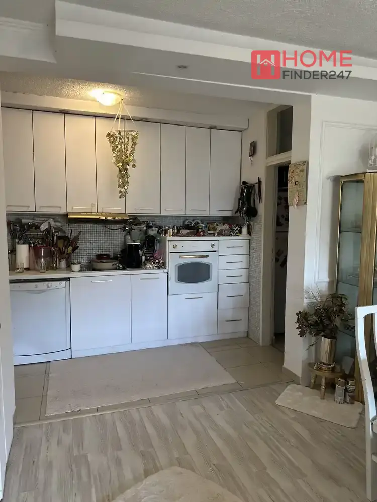 The apartment faces south along its entire length, ensuring stunning and uninterrupted views of the sea from every room. It features a practical two-bedroom layout, consisting of two bedrooms, a hallway, a combined kitchen, dining, and living area, a toilet, a bathroom, and a large terrace.