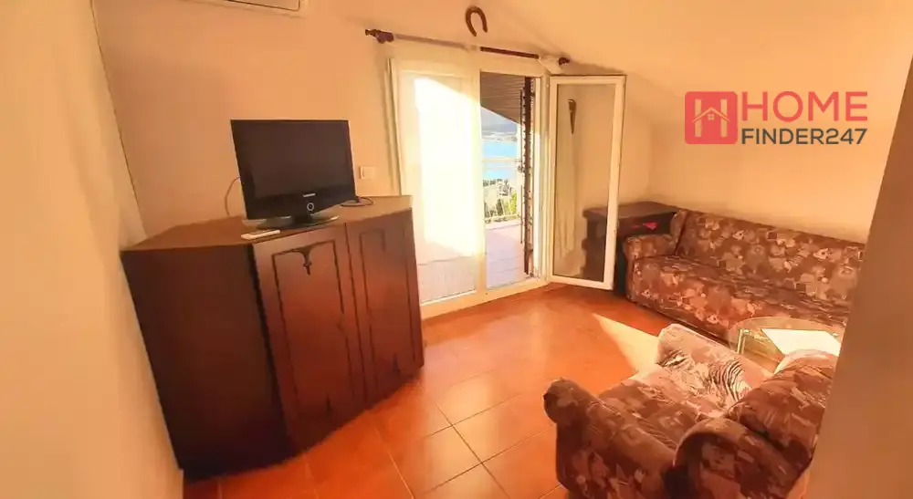 This spacious three-room apartment, measuring 85m², is located in Herceg Novi, Topla 2, and comes with the added benefit of a private 60m² yard. There is the option to build a private parking space within the yard, providing extra convenience.