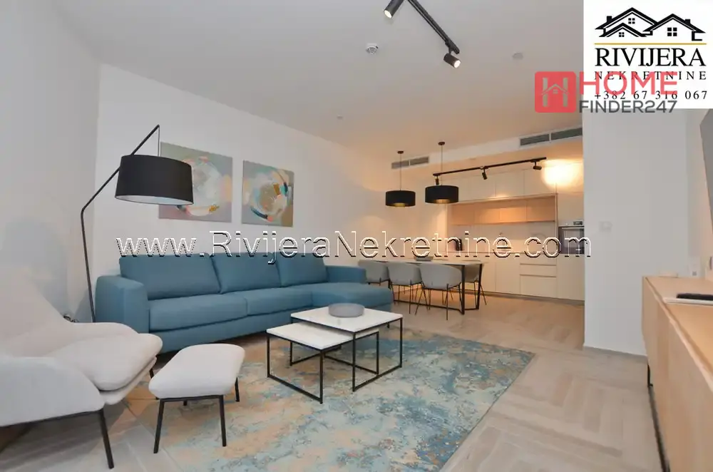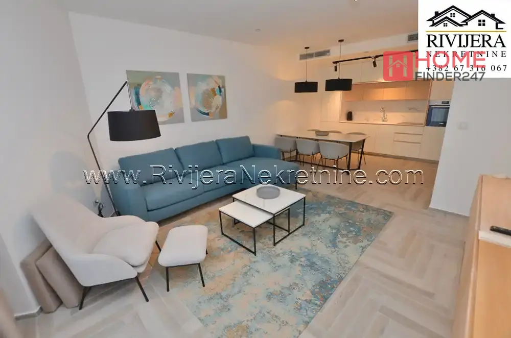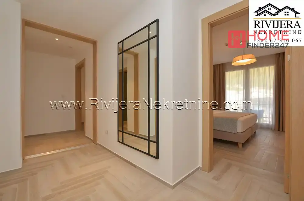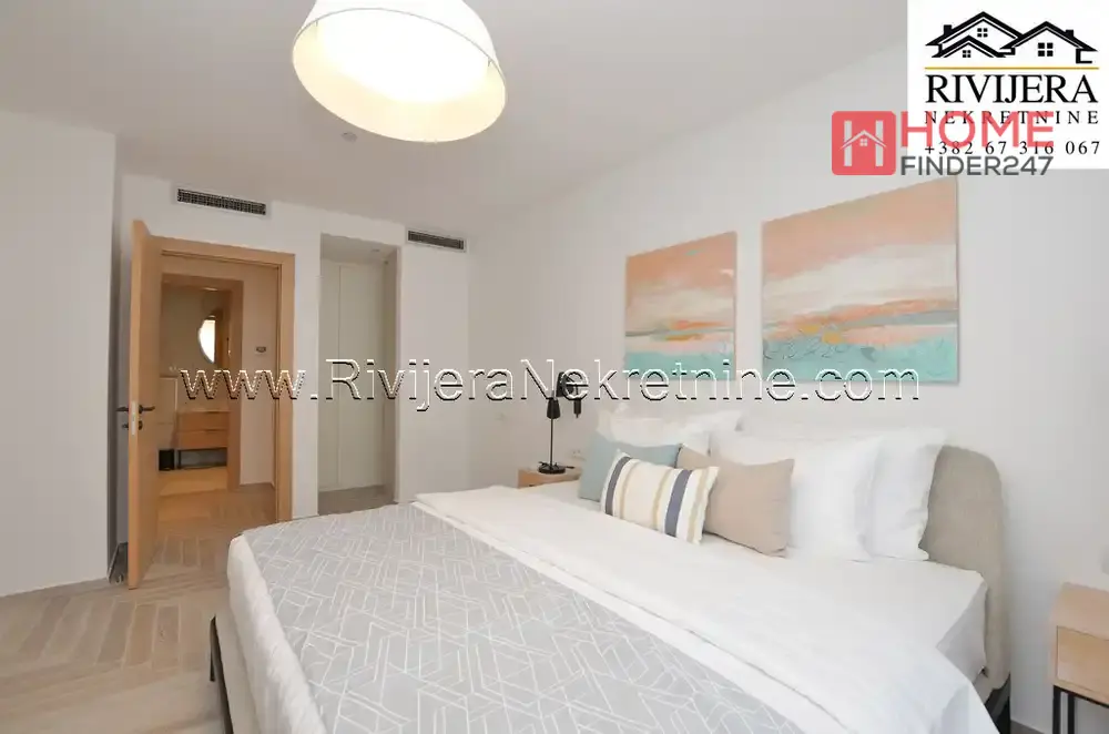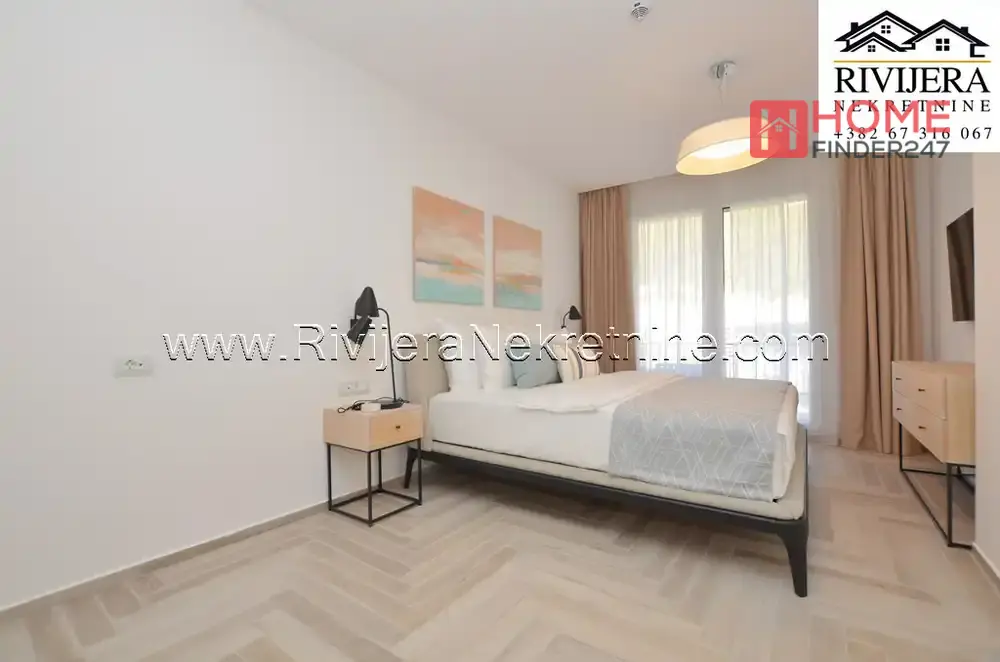 Dvosoban stan u Lazure Resort Residences. Povrsina stana iznosi 99,82m2, na trecem spratu. Raspored prostorija: Dnevni boravak sa kuhinjom, dvije spavace sobe, kupatilo, toalet i terasa. Orijentacija sjever, pogled na brda. Stan se prodaje opremljen. Svi apartmani su uknjiženi 1/1.
