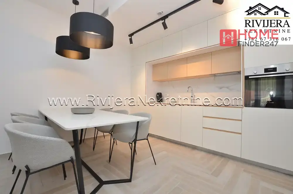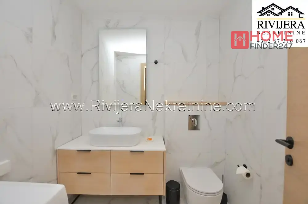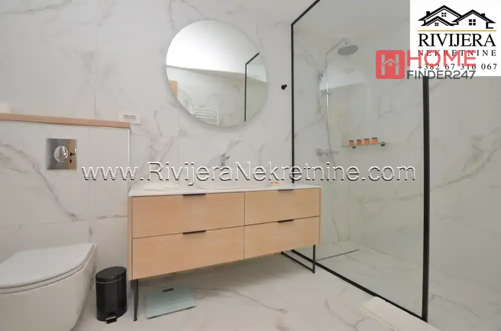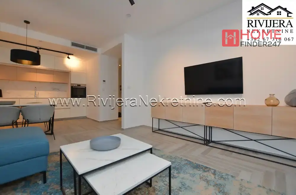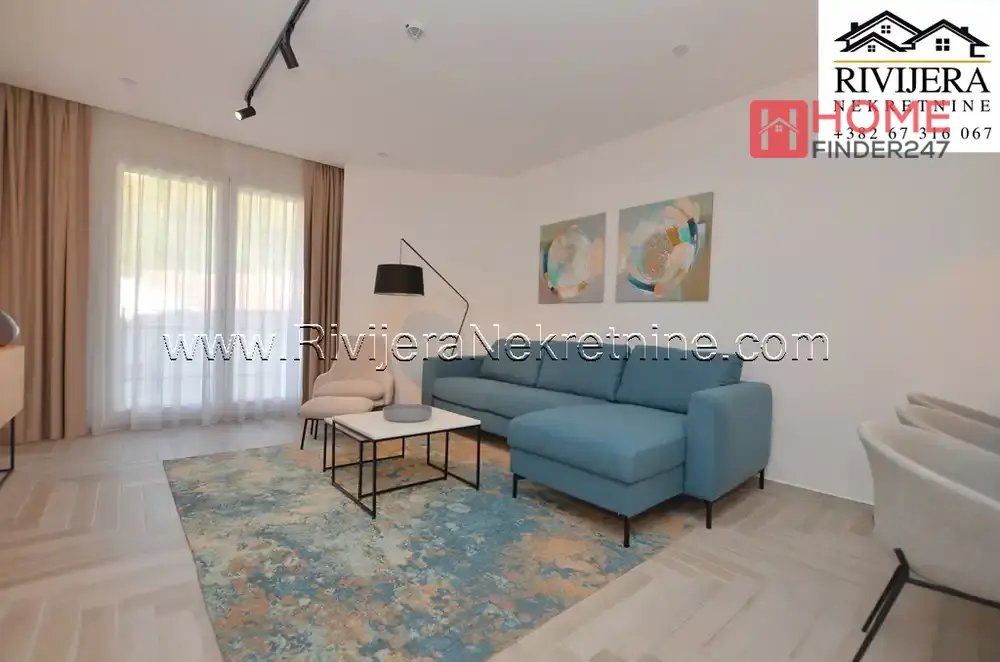 Dvosoban stan u Lazure Resort Residences. Povrsina stana iznosi 99,82m2, na trecem spratu. Raspored prostorija: Dnevni boravak sa kuhinjom, dvije spavace sobe, kupatilo, toalet i terasa. Orijentacija sjever, pogled na brda. Stan se prodaje opremljen. Svi apartmani su uknjiženi 1/1.