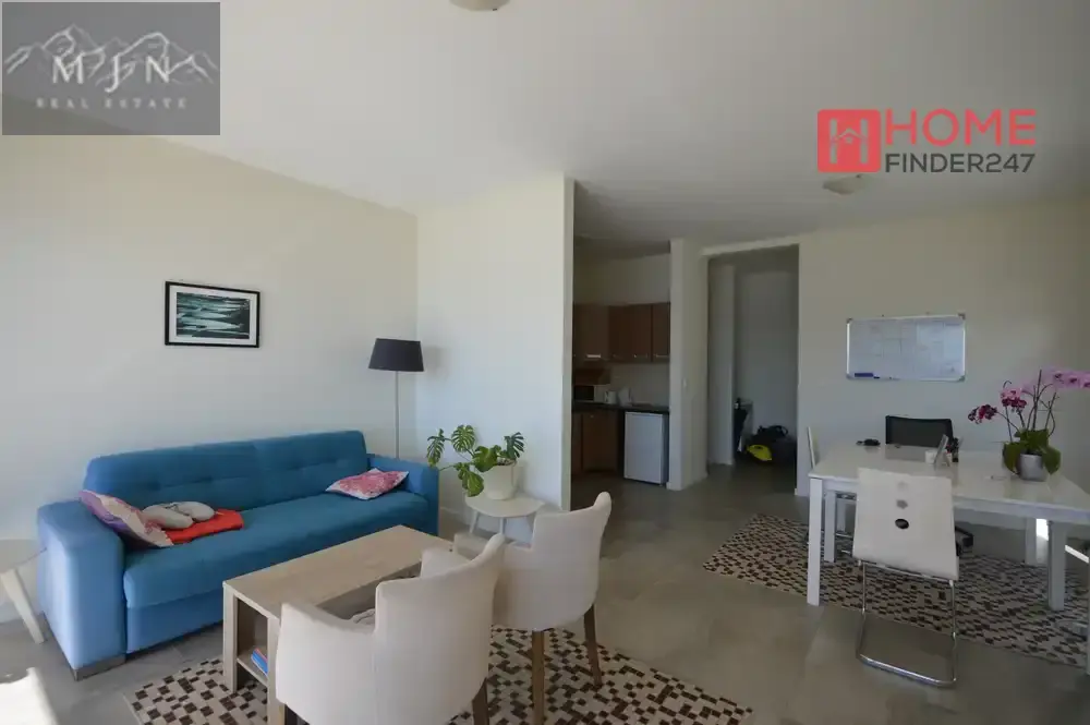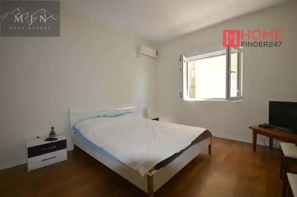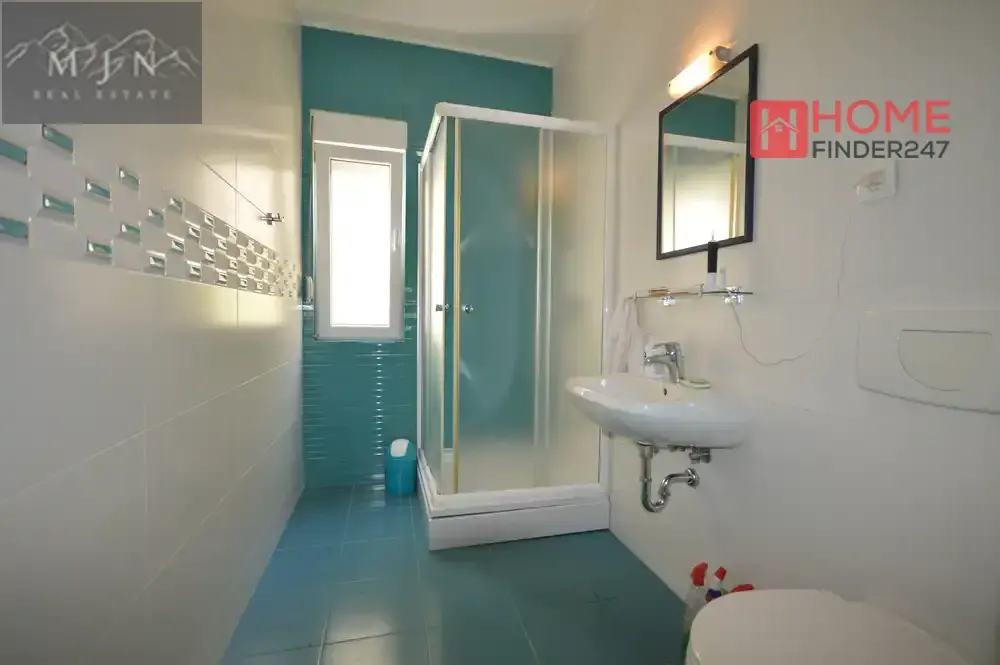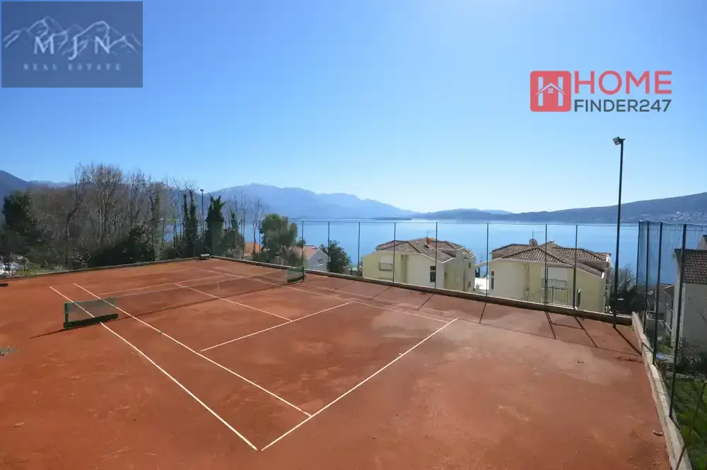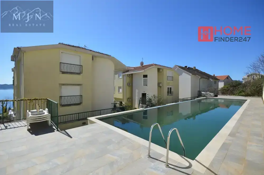 Spacious 73m² apartment in Bijela, located on the first floor, just 150 meters from the sea. Situated in a smaller residential complex with a swimming pool and a tennis court, the property also includes a parking space.