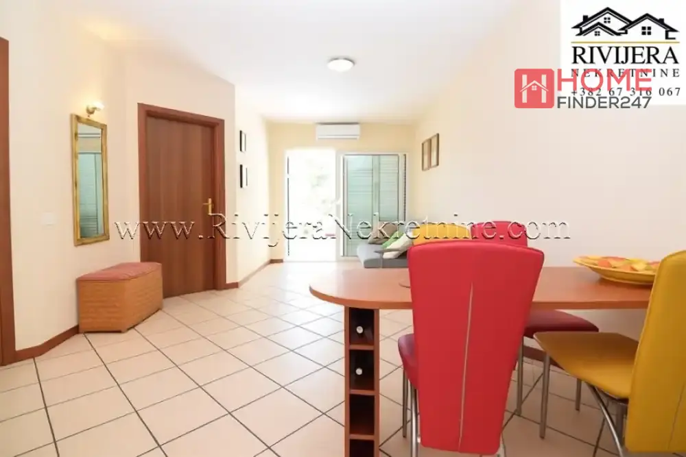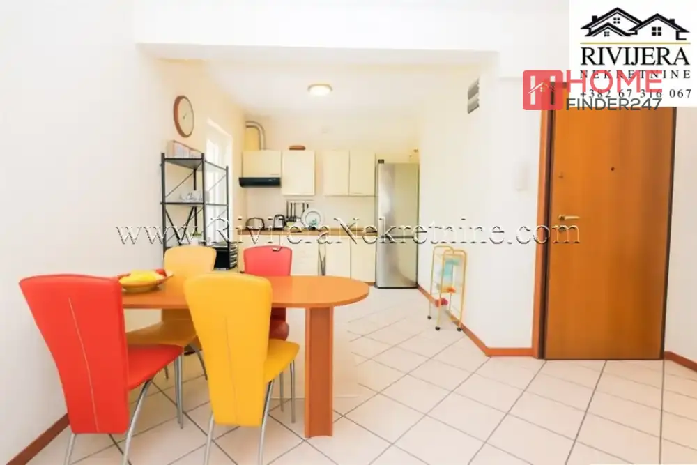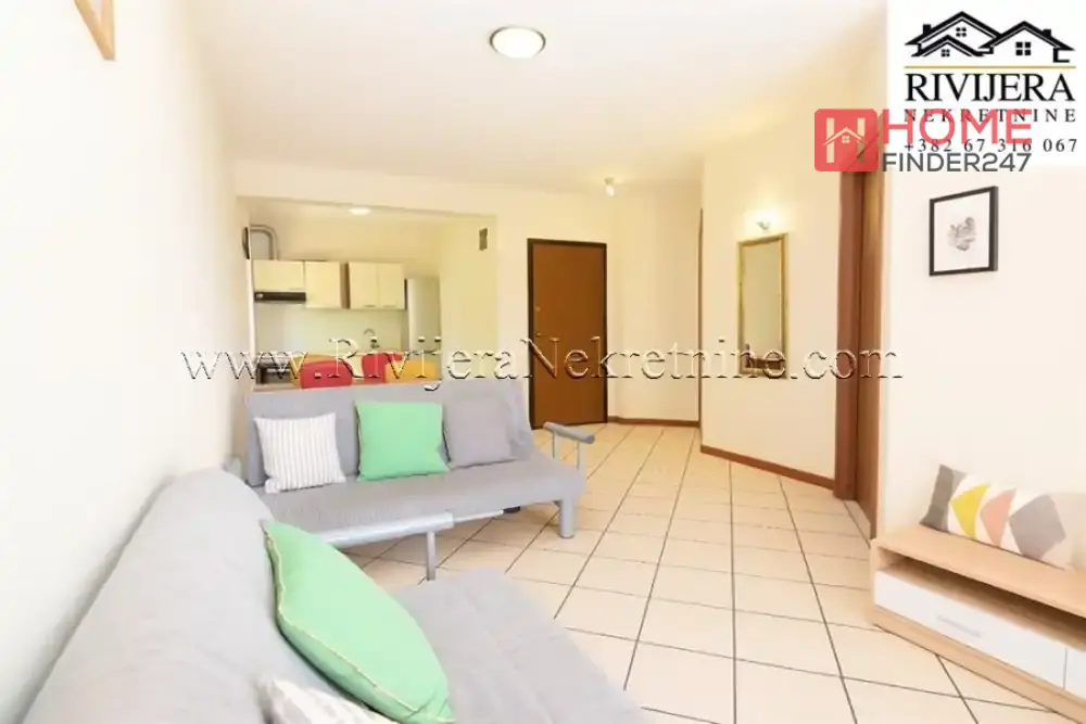 Jednosoban namjesten stan Savina Herceg Novi. Povrsina stana 46m2, I sprat.Raspored prostorija: Dnevni boravak i kuhinja, spavaca soba, kupatilo, terasa sa pogledom na more. Stan se nalazi u manjoj stambenoj zgradi sa liftom i bazenom. U okviru kompleksa, vlasnik stana ima ekskluzivni udio u bazenu (1/6), sto ukljucuje 4 lezaljke od ukupno 24. Garaza u naselju Energoprojekt dostupna je za kupovinu po cijeni od 35.000 €. Udaljen 100m od mora.