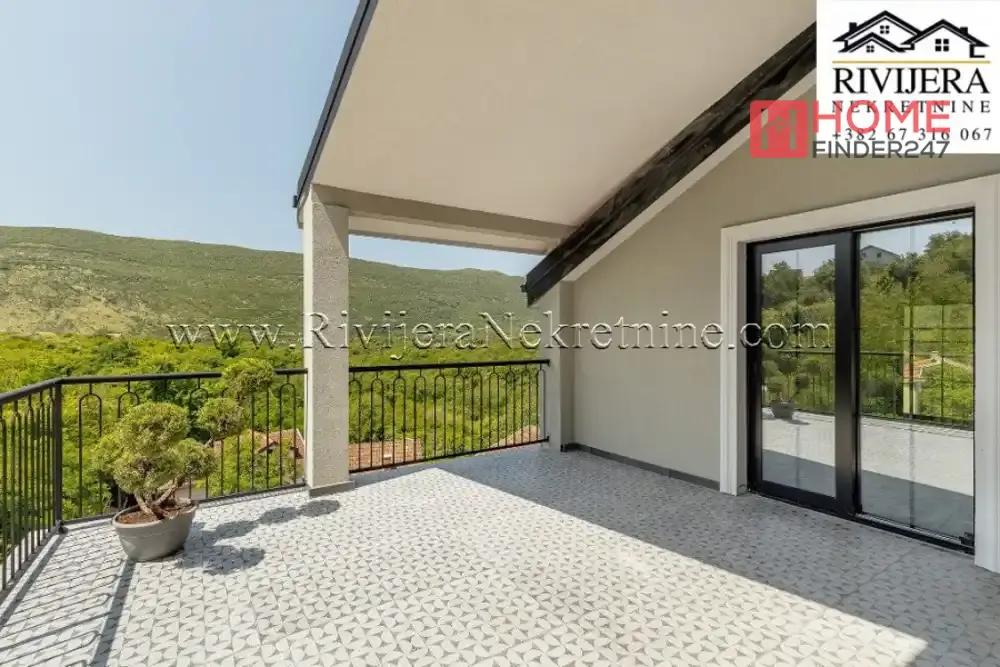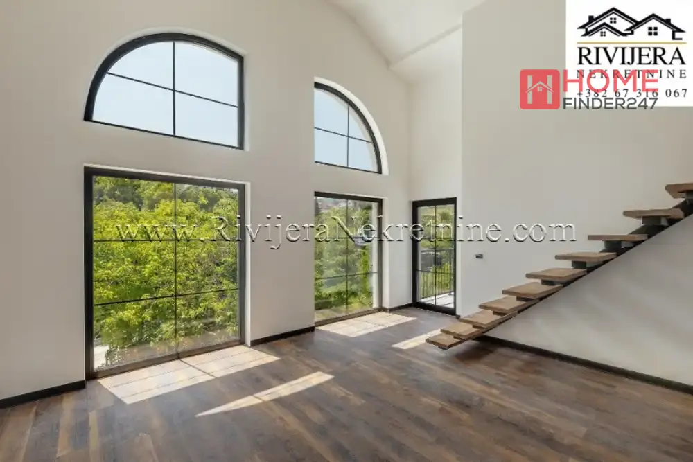 Smještena u mirnim brdima iznad Herceg Novog, nekretnina nudi panoramski pogled na okolnu šumu i planine. Na samo nekoliko minuta od plaže, trgovina i šarmantnog Starog grada, te lako dostupna s’ aerodroma Tivat i Dubrovnik, ova lokacija je idealna za one koji cijene i prirodu i praktičnost.