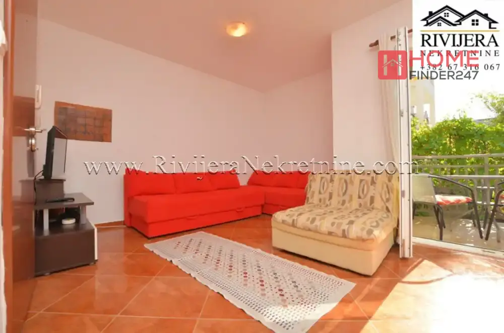 Jednosoban stan na samoj obali mora Baosic. Veoma atraktivna lokacija za odmor i izdavanje. Stan povrsine 38 m2 opremljen u odlicnom stanju. Raspored prostorija: dnevna soba sa kuhinjom, terasa, spavaca soba, kupatilo. Stan uknjizen u katastru nepokretnosti, potrebna legalizacija. Cijena: 150.000 eura