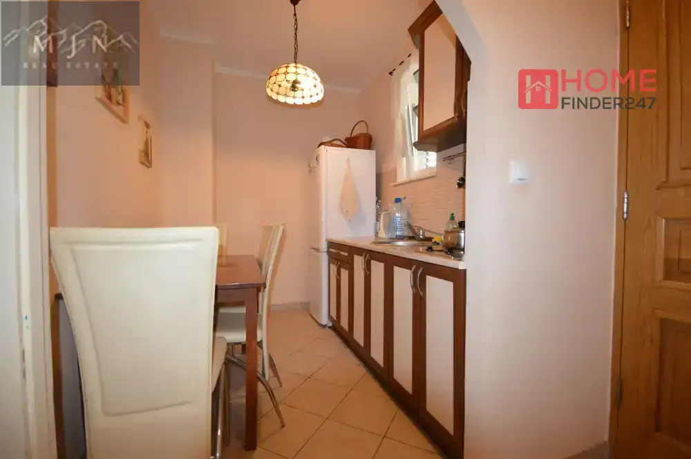 Raspored uključuje dnevnu sobu, hodnik, kuhinju sa trpezarijom, jednu spavaću sobu, kupatilo i terasu.