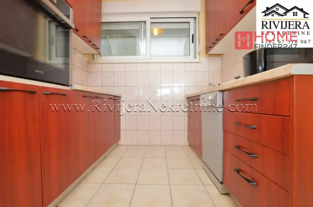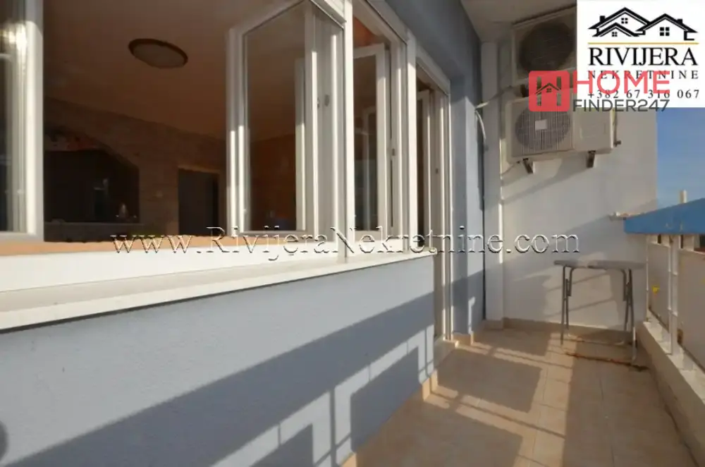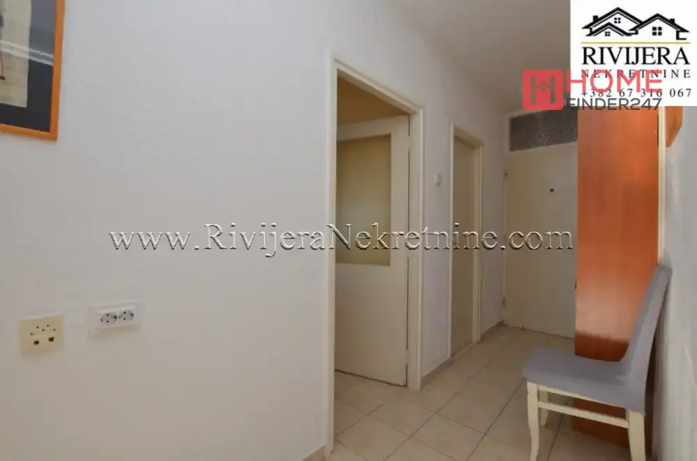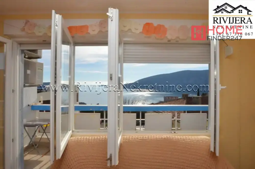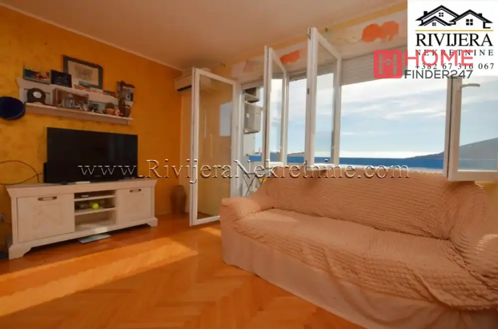 Opremljen dvosoban stan pogled na more Herceg Novi centar. Povrsina stana 73m2, raspored prostorija: ulazni hodnik, kupatilo + toalet, dvije spavace sobe, kuhinja sa trpezarijom, dnevna soba, terasa (sa odlicnim pogledom na more). Stan opremljen u dobrom stanju, juzno orjentisan, osuncan, treci sprat. Udaljenost od trga Nikole Djurkovic dva minuta hoda. Cijena: 197.000 eura