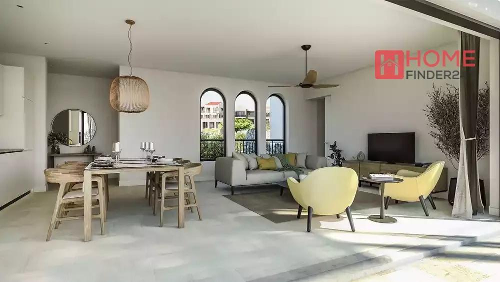Luxury two-bedroom apartment with a sea view and a yard within the new residential complex in the Golf neighborhood.