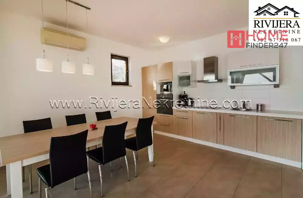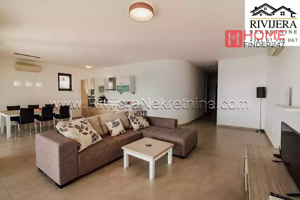 Trosoban stan 149m2 sa tri spavace sobe, dva kupatila i veserajem, dnevna soba sa kuhinjom, terasa sa pogledom na more.Cijena 330.000€