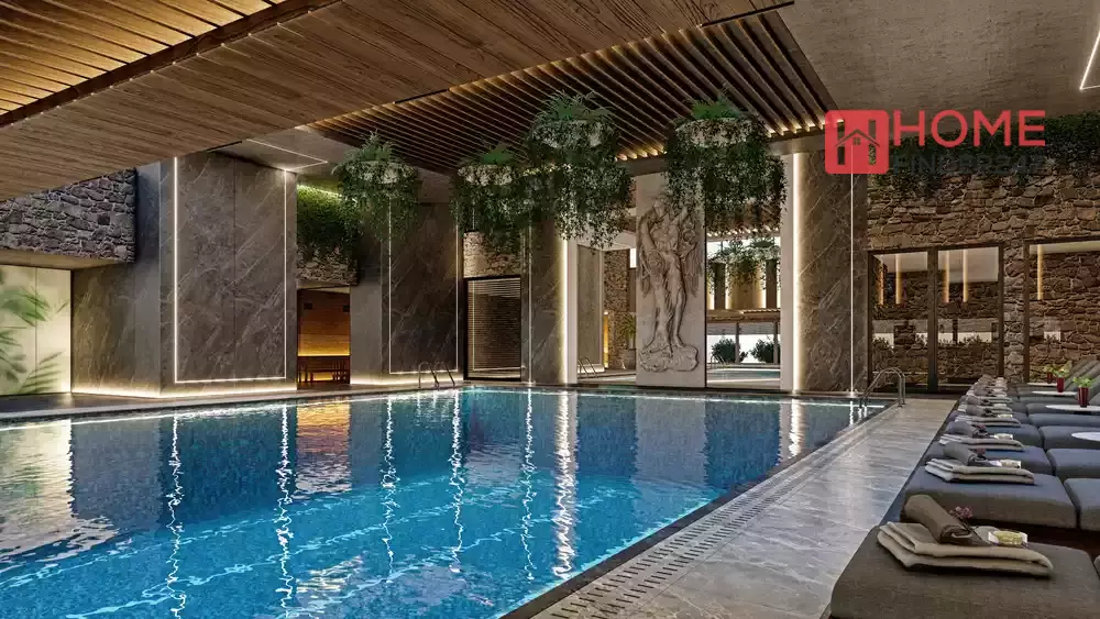 Luxurious one-bedroom apartment within a 5-star Resort. The apartment has a total size of 53m2 and it is located on the first floor, overlooking the yard.