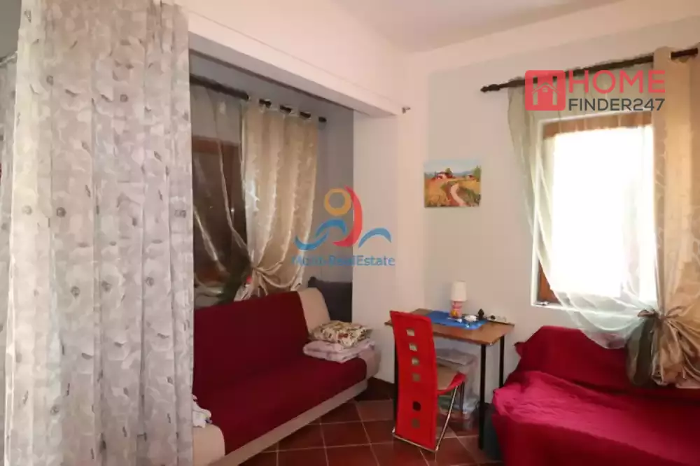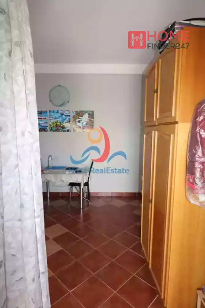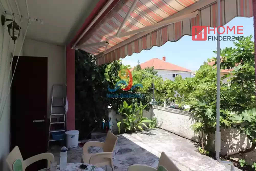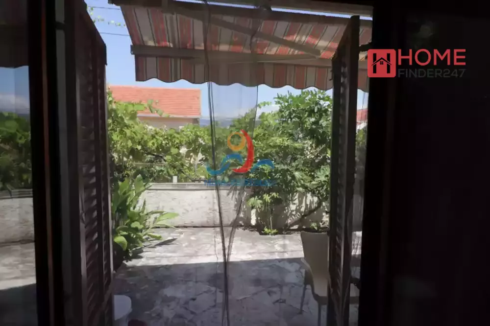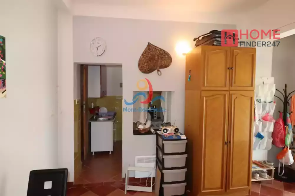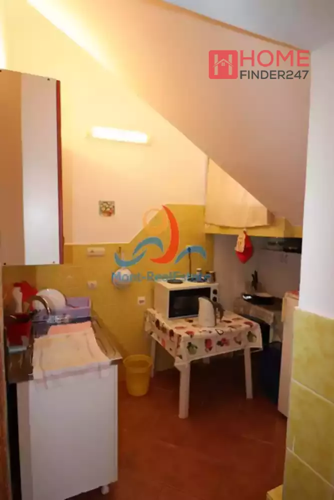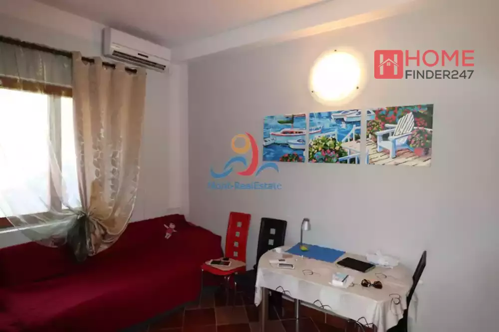 Studio in Radovici of 16 m2 + terrace, total area of 28 m2, high ground floor, separate kitchen, bathroom. Large terrace with flowers and greenery. About 800 m from the sea and complex Lustica Bay.
