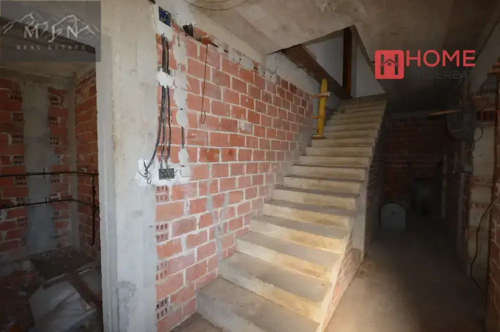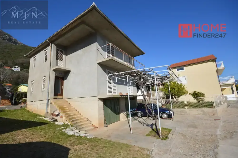 This large house in Baošići is located 700 meters from the sea and situated on a 160m² plot, the house has a total area of 210m² and is structurally completed, requiring only finishing work offering great potential for customization and finishing according to personal preferences.