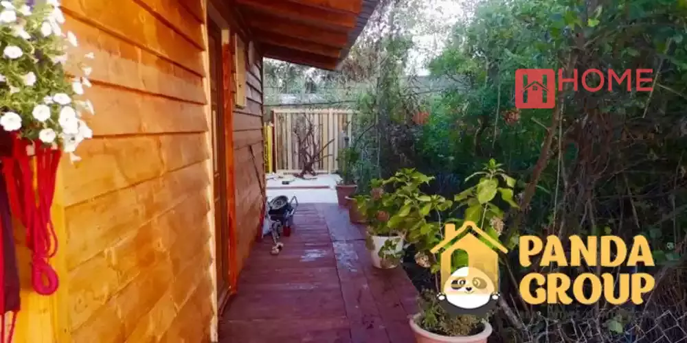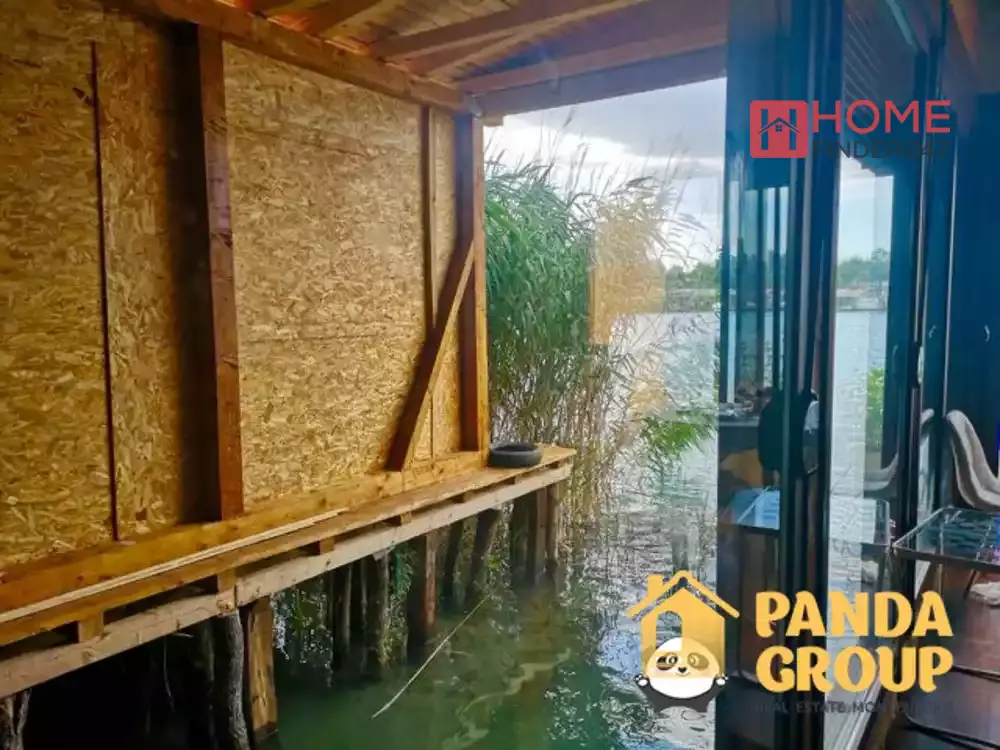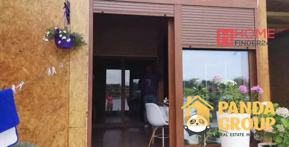 The layout of the house: bedroom, bathroom, spacious kitchen with living room and a magnificent terrace overlooking the river.